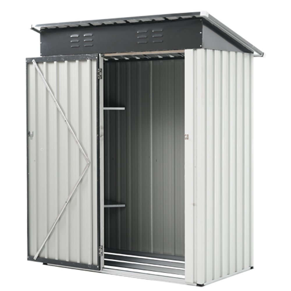 【 三角棚あり 補強フレーム付き】物置 屋外 大型 倉庫 戸外収納庫 物置 防水/耐侯/鍵付き 収納可能 ガーデン/頑丈 大容量 スチール 床が
