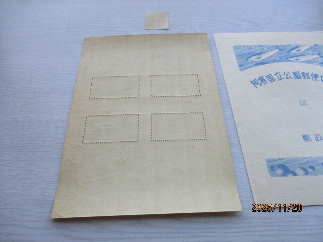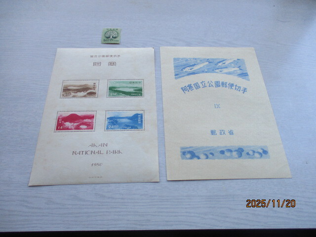 阿寒小型シートと全国緑化 未使用です。裏糊あります。わずかなシミ等あります。