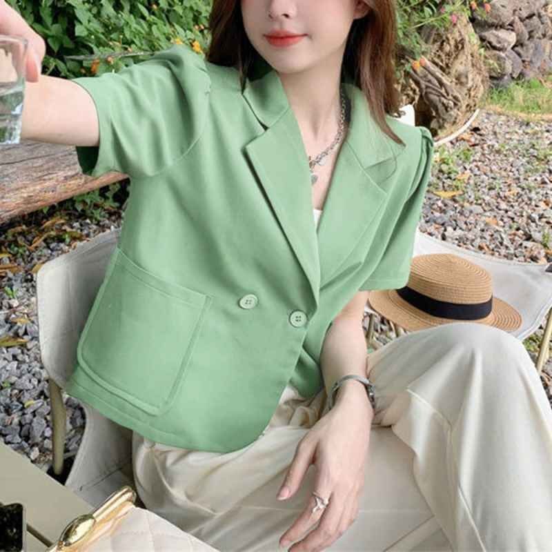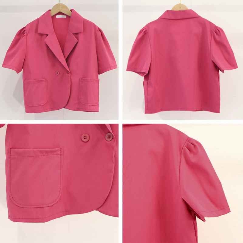 クロップド丈 半袖ジャケット ショート丈 テーラードジャケット Vネック 春夏アウター XL ホットピンク