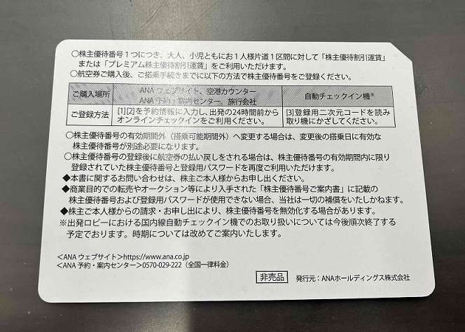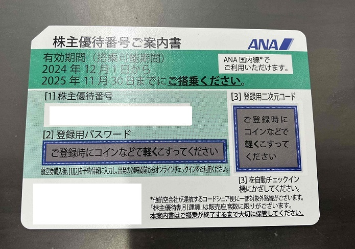 | 商品説明 | 【商品】 ANA株主優待券 *番号通知のみになります。 【有効期限】 ~2025年11月30日 1枚当たりの金額になります。 複数枚ご希望の場合はご希望の枚数を選択してください。 ※当方10時~19時までの営業時間になります。 営業時間内に入金確認できた落札に関しては すぐの番号通知が可能です。 |
