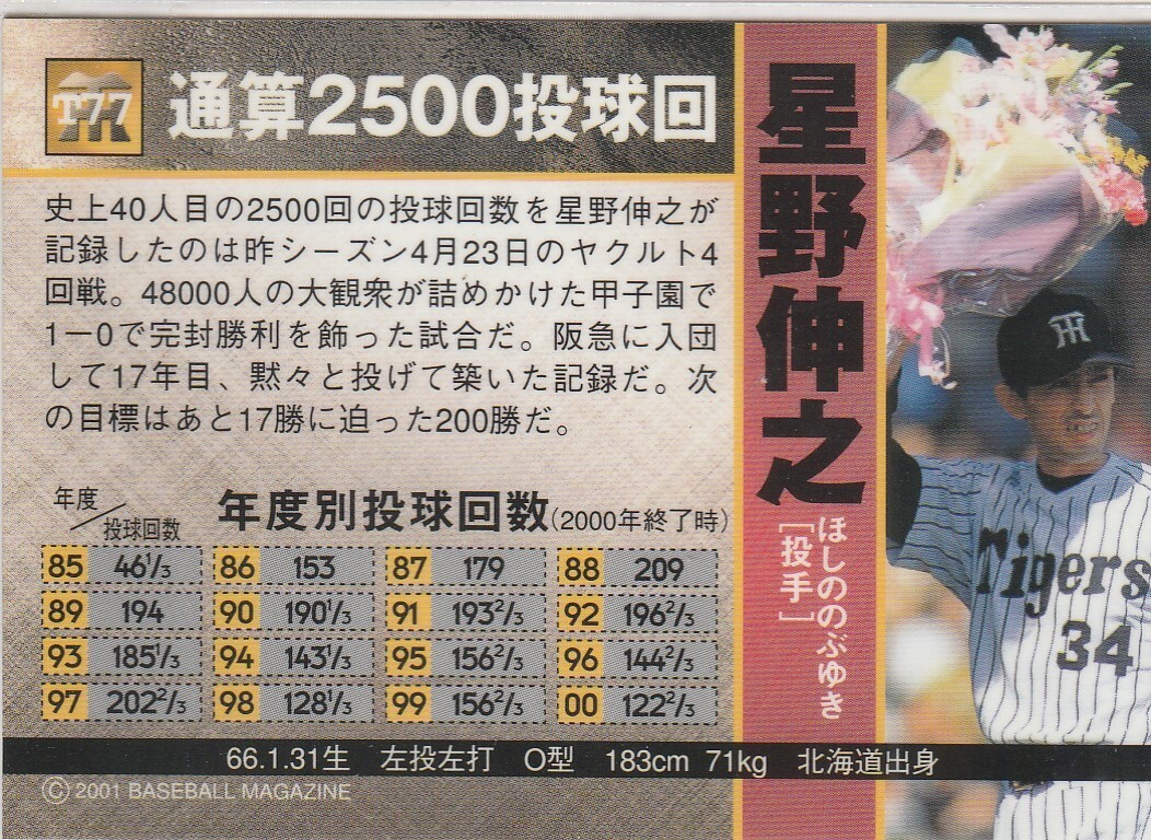●2001BBM/阪神【星野 伸之】メモリアル:通算2500投球回 No.T77