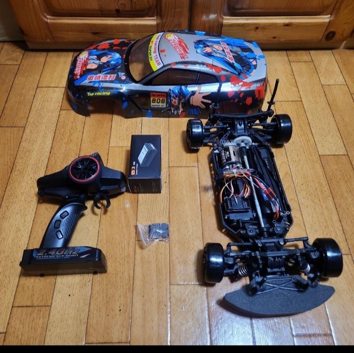中古シャーシはへたった■おまけ■バッテリーをつけてる悪質出品者もたまに見かけますが、新品、現行のリポバッテリー搭載!!これ大事です