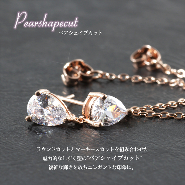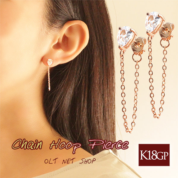 新品/ピアス/K18GP/チェーン/フープ/ピンクゴールド/18金/ダイヤ/CZ/レディース/両耳/シンプル/揺れる/バックキャッチ/上品/女性