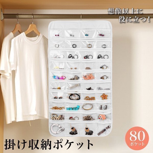 アクセサリー 収納 ポケット 大容量 ウォールポケット クローゼット 吊り下げ式 ポケット収納 ハンガー 両面 80ポケット おしゃれ 壁掛け