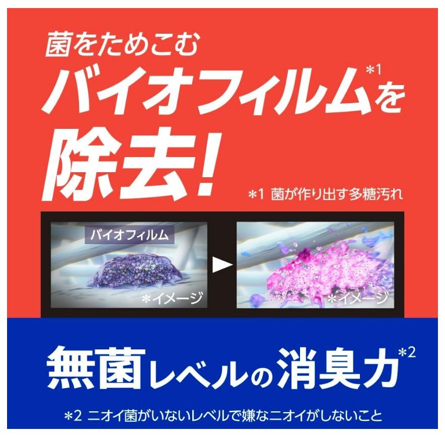| 商品の説明 | アタック液体史上最高の清潔力。無菌レベルの消臭力※1 濃縮洗浄パワー。漂白剤・除菌洗剤を超えたバイオフィルム除去を達成※2。 「抗菌+(プラス)※3※4」「ウイルス除去※5」「洗たく槽の防カビ※3」 蛍光増白剤無配合※6。 さらに、「高い洗浄力」と「環境へのやさしさ」の両立を目指した洗浄成分バイオIOSを配合。 しかも、コストコ限定処方。食べこぼし汚れへの洗浄力UP※7。 ※1ニオイ菌がいないレベルで嫌なニオイがしないこと ※2菌が作り出す多糖汚れ 当社酸素系漂白剤・除菌洗剤比 ※3すべての菌・カビの増殖を抑制するわけではありません。 ※4抗菌に加えてニオイ菌のニオイ代謝を制御 ※5すべてのウイルスを除去するわけではありません。エンベロープタイプのウイルス1種で効果を検証 ※6設備が蛍光剤配合洗剤と共用のため、微量の蛍光剤が検出されることがあります ※7デンプン汚れに対して当社通常品比 |