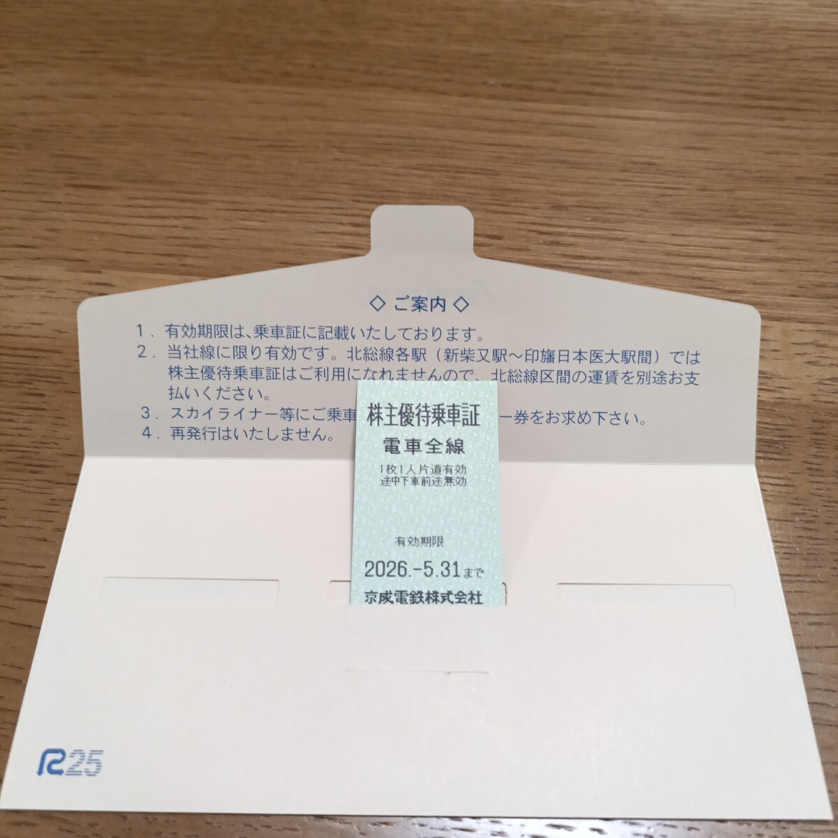 京成電鉄の株主優待乗車証です。