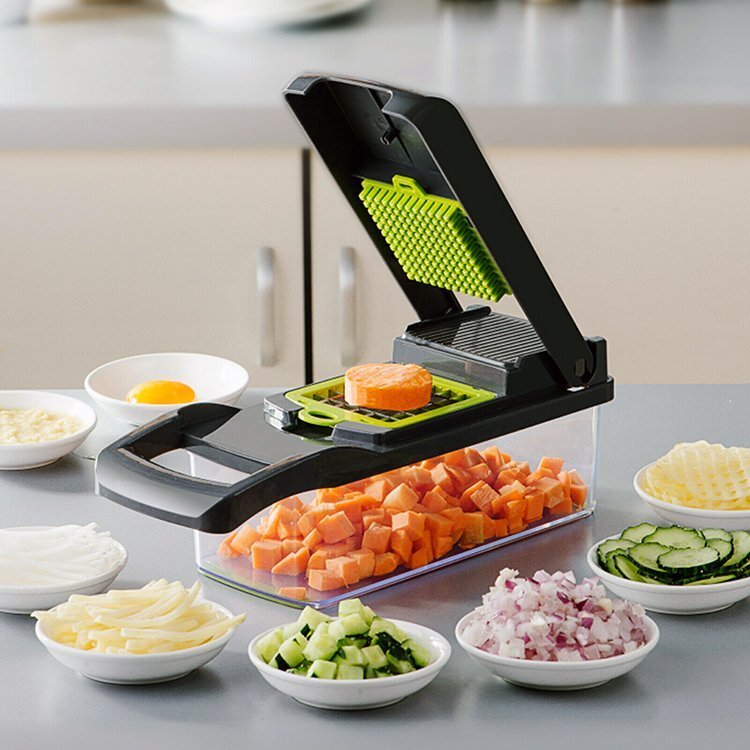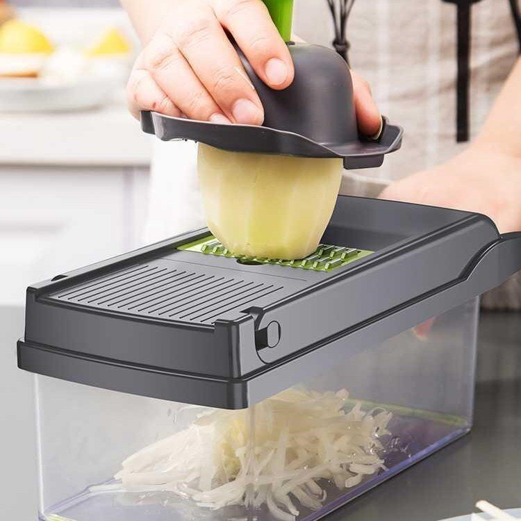 ◆マルチスライサーセット 万能野菜カッター 角切り/薄切り/千切り/すりおろし作業がこれ一つで 水切りかご付 時短調理に お手入れ簡単 食材スライサー ベジタブルチョッパー MTSLC71
