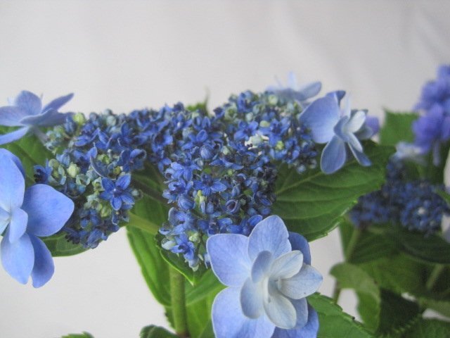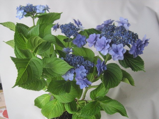 あじさいは水を沢山必要とします。表土が乾く前にたっぷり水やりをしてください。鉢底から水が流れ出てくる位まで水を与え、受け皿には水をためないようにします。風通しが良く、日当たり~半日陰の場所で管理します。夏場の直射日光は葉焼けをおこすので避けるようにします。肥料は、緩効性肥料を2週間に1回程度2~3gの置き肥で施すか、週1回2000倍くらいの液肥を与えてください。