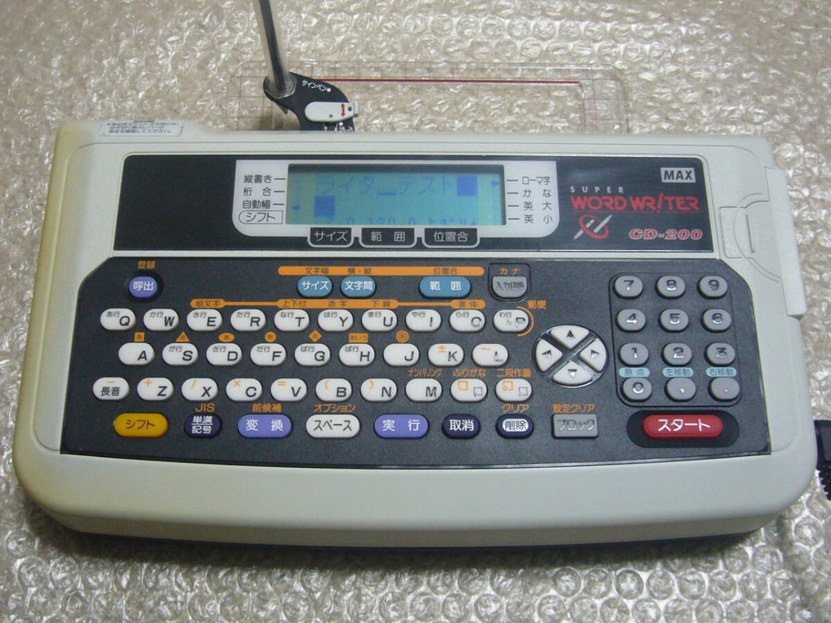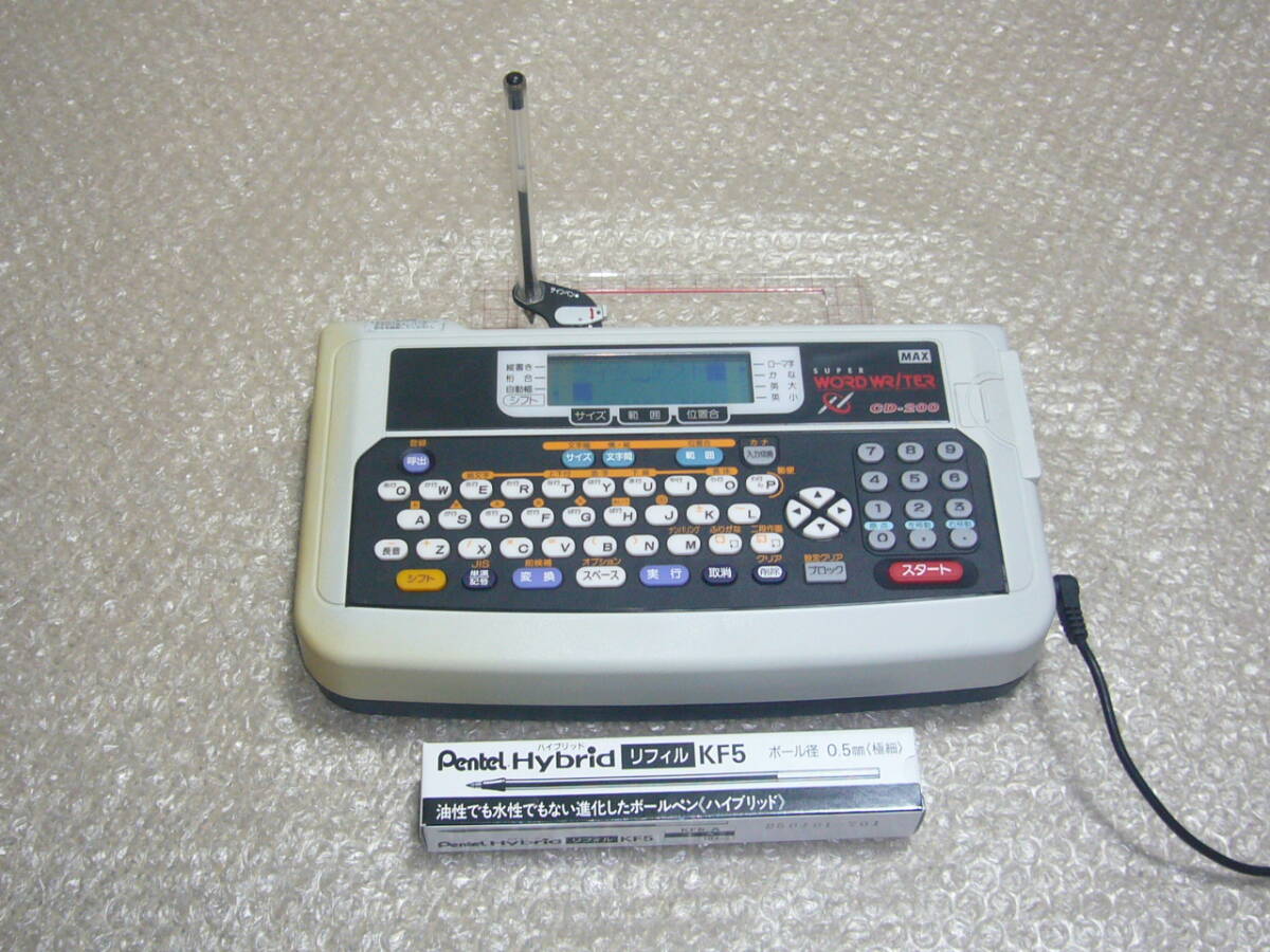 即決 動作確認済 CD-200 ワードライタ 電源、黒ボールペン1本、替芯(黒)10本付、マックス ワードライター