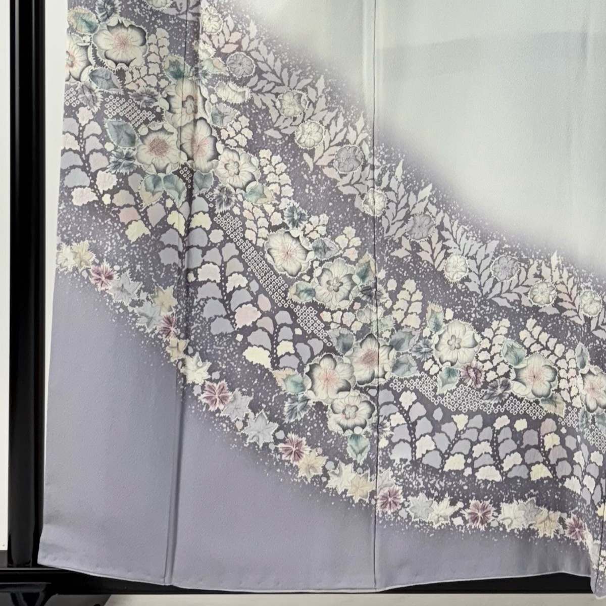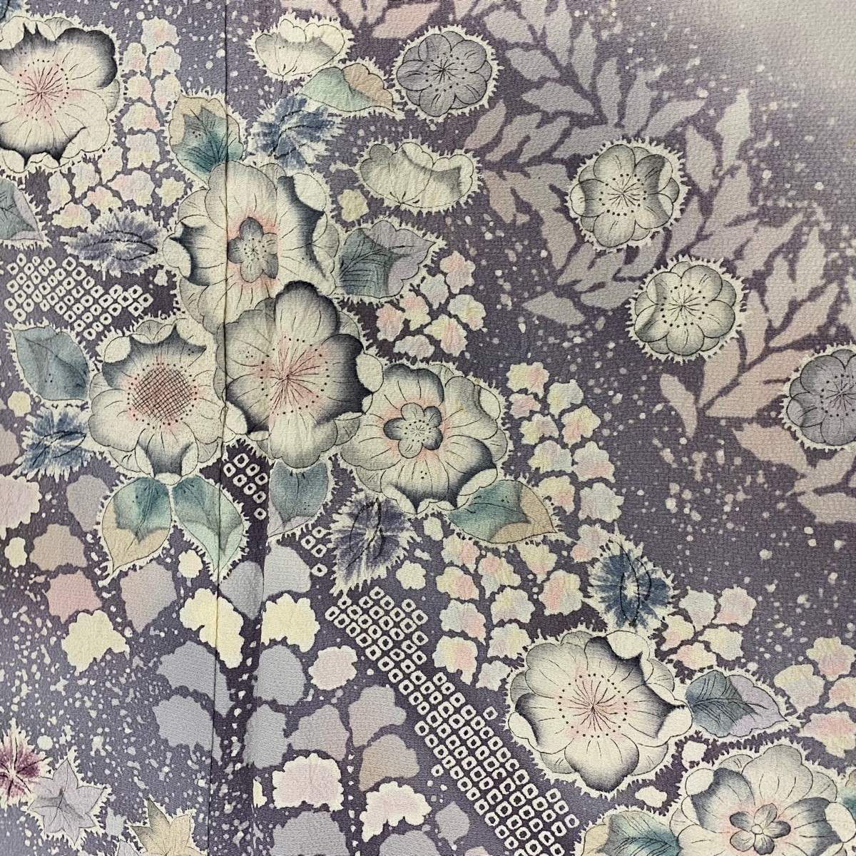 | 訪問着 名品 翠山工房 落款 辻が花 ぼかし 灰紫 袷 身丈160.5 裄丈65 M 正絹 【中古】 |
