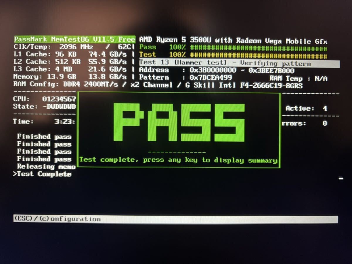 画像のとおりMemtest86による動作確認を行なっております。ただ、当方のPC環境が2400MHzしか対応していないため、2666MHzでの確認は行なっておりませんのでご注意下さい。
