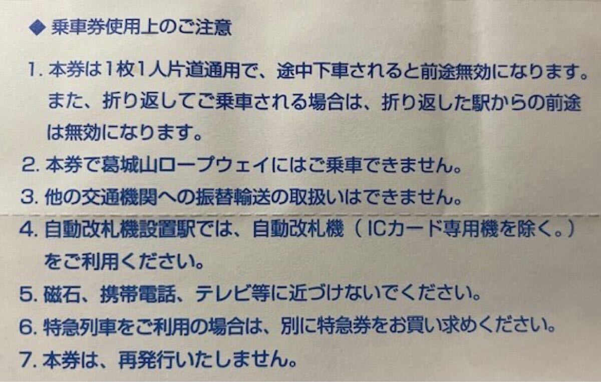 ◎乗車券は葛城ロープウェイ以外の全線有効
