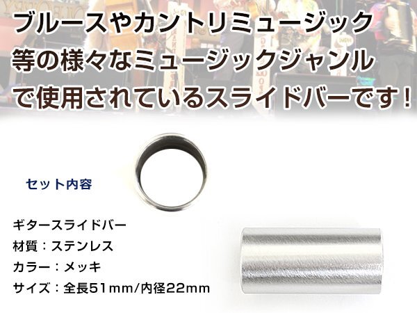 メール便 貫通型 ギター ステンレス スライドバー 51mm ボトルネックギター スライドギター ブルースなど スライドボトル