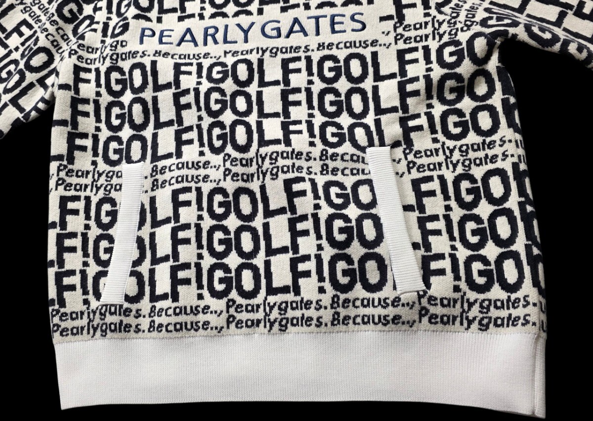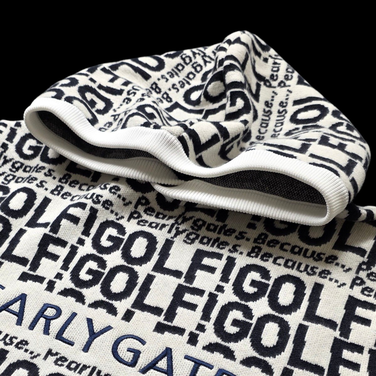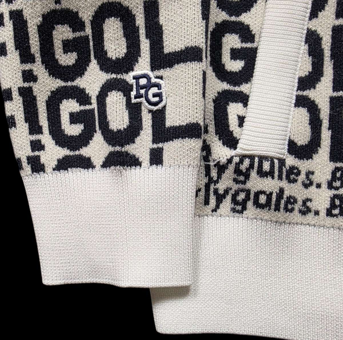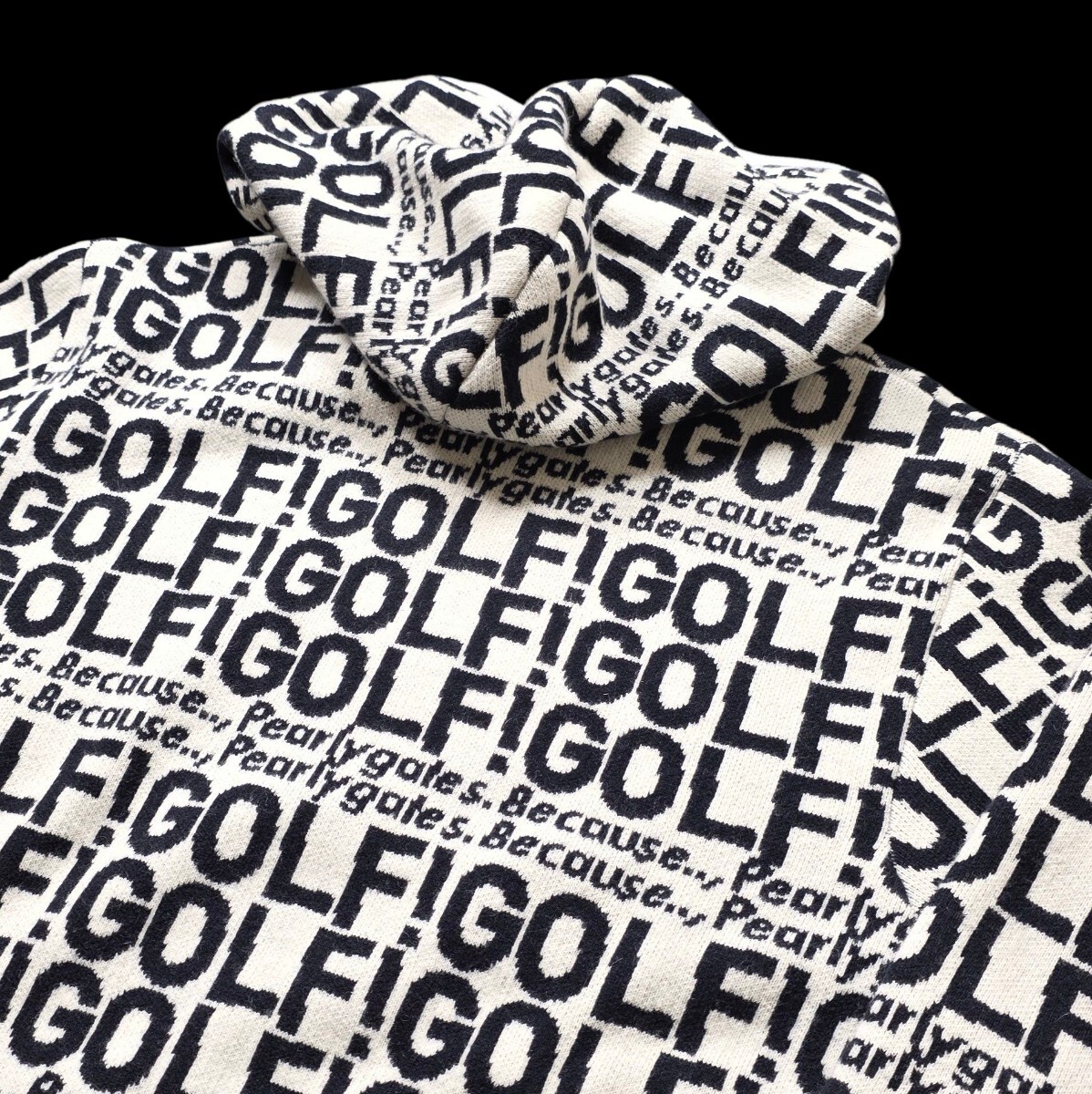 ロゴワークの組み合わせで新鮮に総柄を表現したGOLF柄ジャガードフード付きニット。