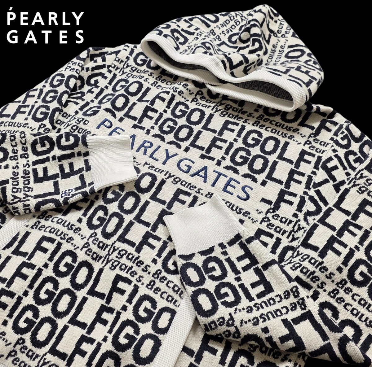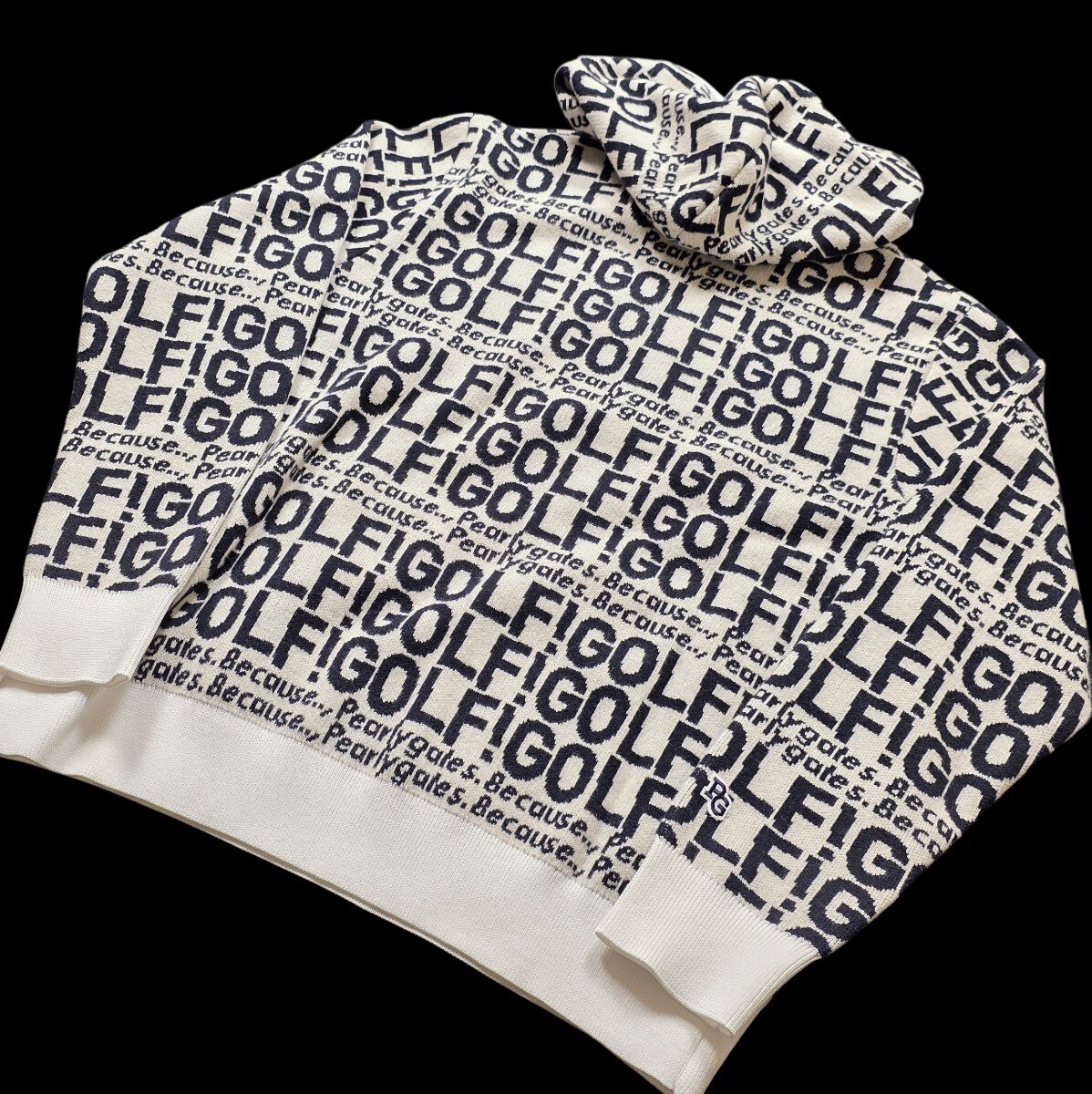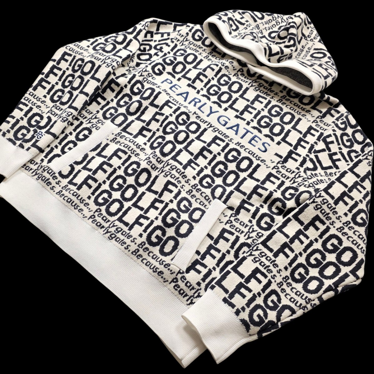 ★新品正規品 PEARLYGATES/パーリーゲイツ GOLF柄ジャガード フード付きニット 5(L)