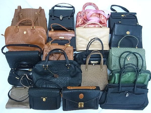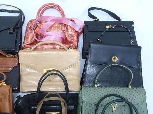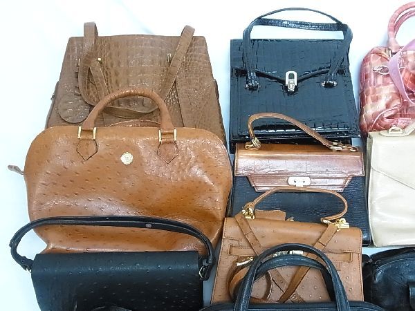 1円 ■極上■本物■JRA公認■ クロコダイル オーストリッチ 等 型押含む ハンドバッグ ショルダーバッグ 等 20点セット まとめ売り BQ0467