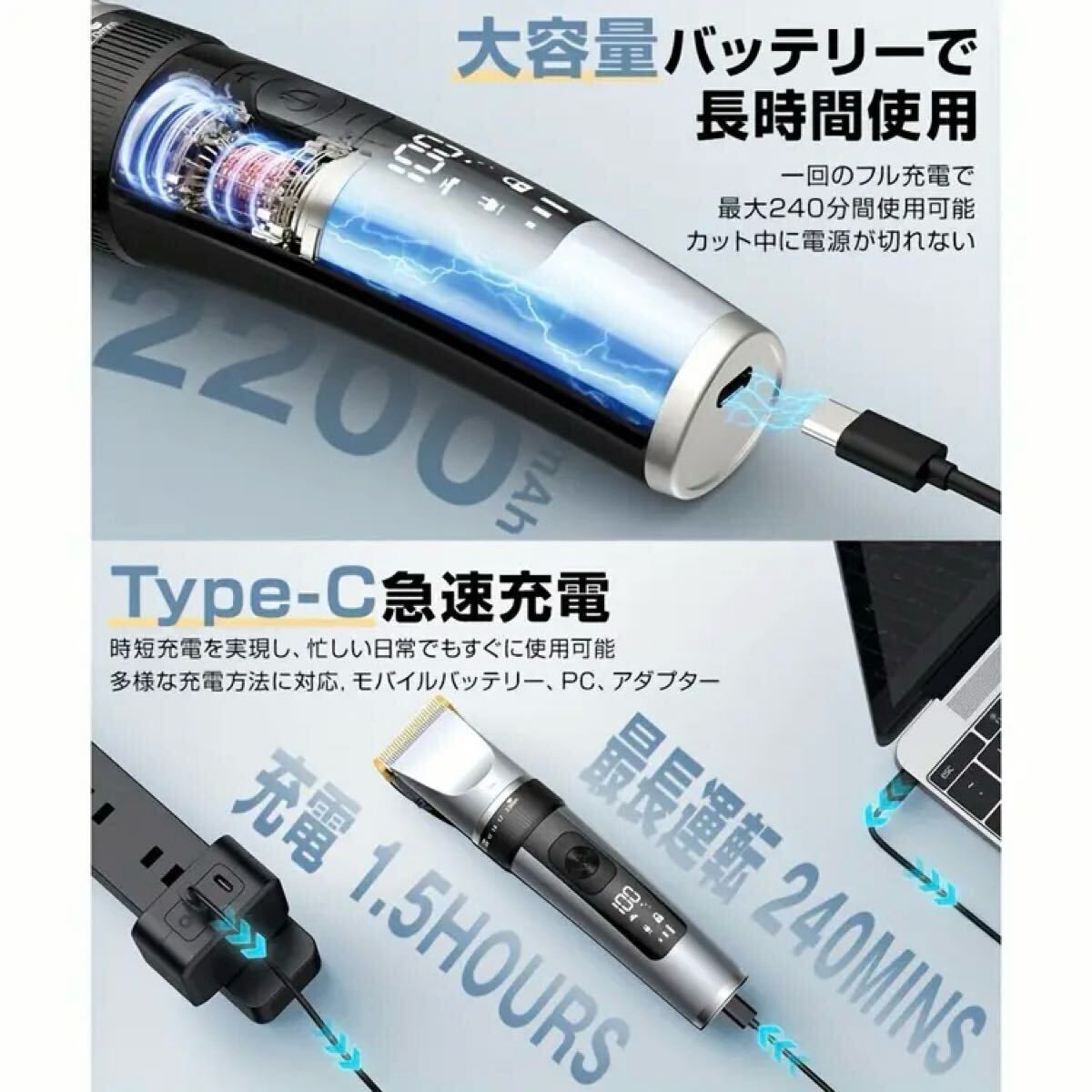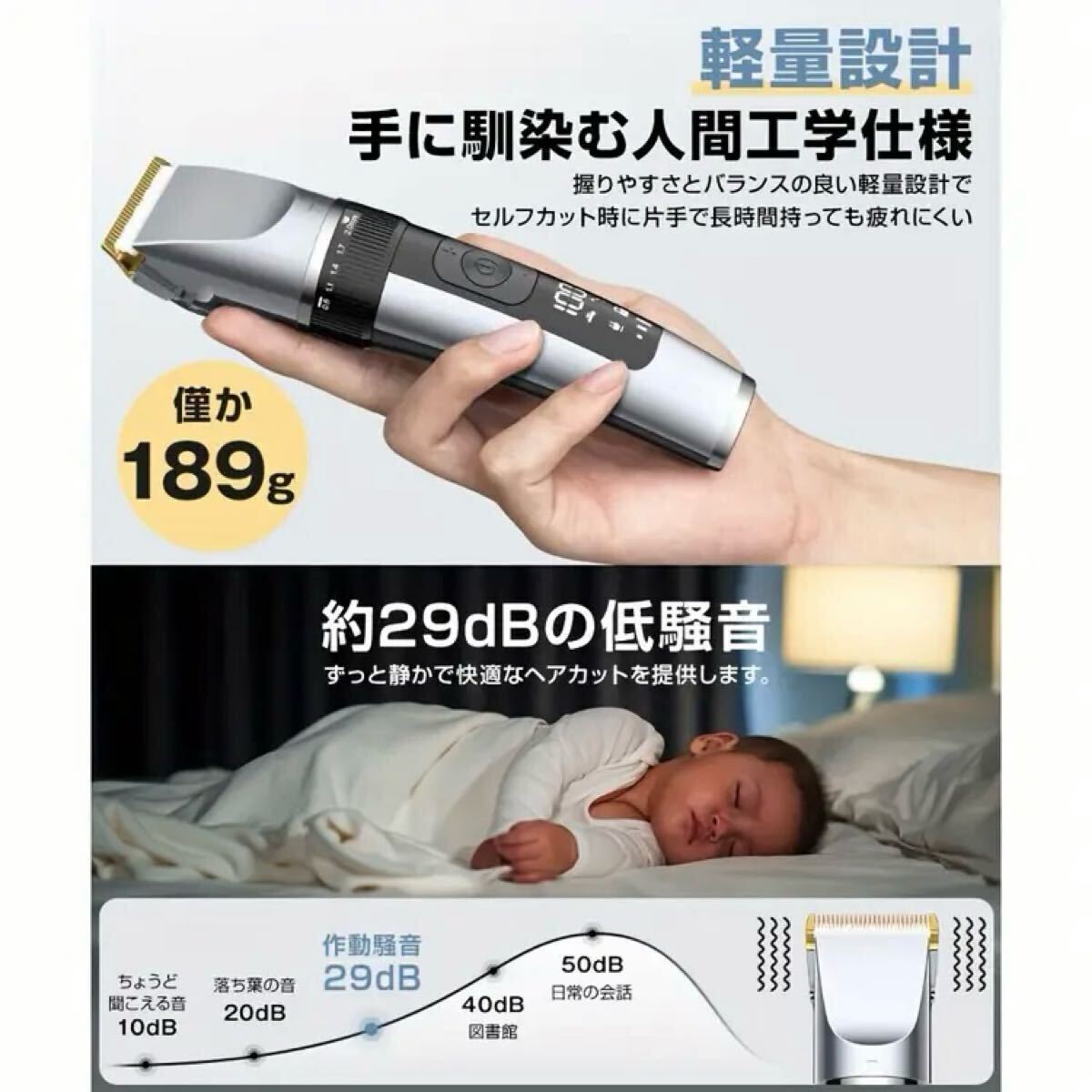 充電式 バリカン 大容量 バッテリー 長時間使用可能 軽量 セルフカット 子供にも