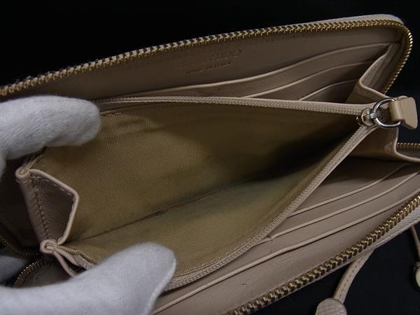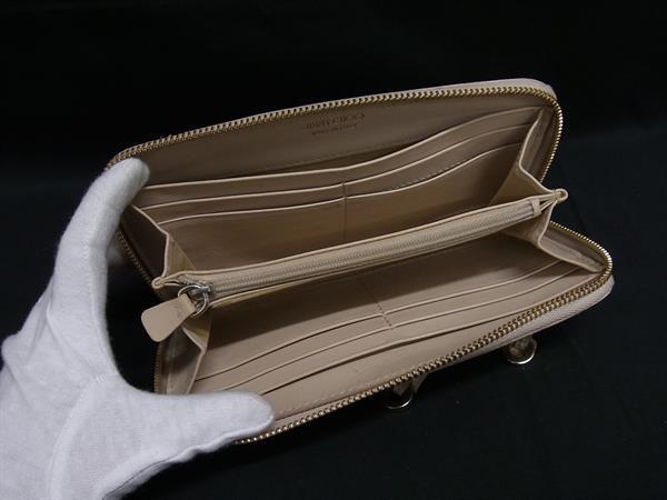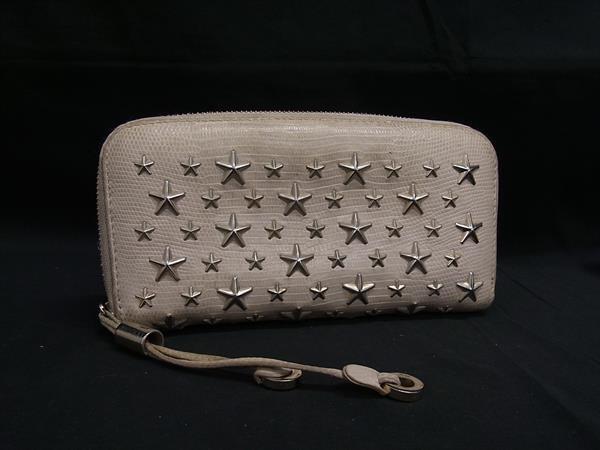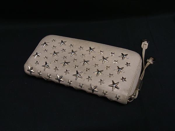 1円 JIMMY CHOO ジミーチュウ フィリパ スタースタッズ リザード型押しレザー ラウンドファスナー 長財布 ウォレット ベージュ系 GA6301