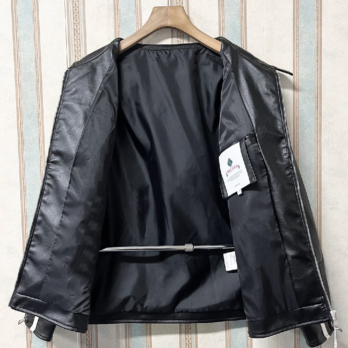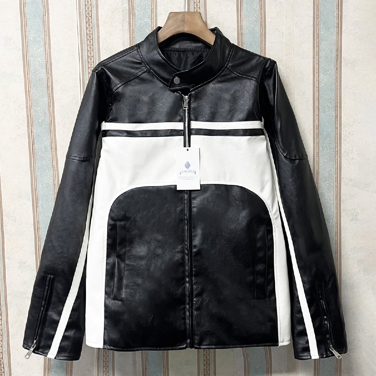 人気 定価12万 FRANKLIN MUSK・アメリカ・ニューヨーク発 レザージャケット PUレザー 防水 防風 切替 立ち襟 スポーティー ライダース バイク サイズ4