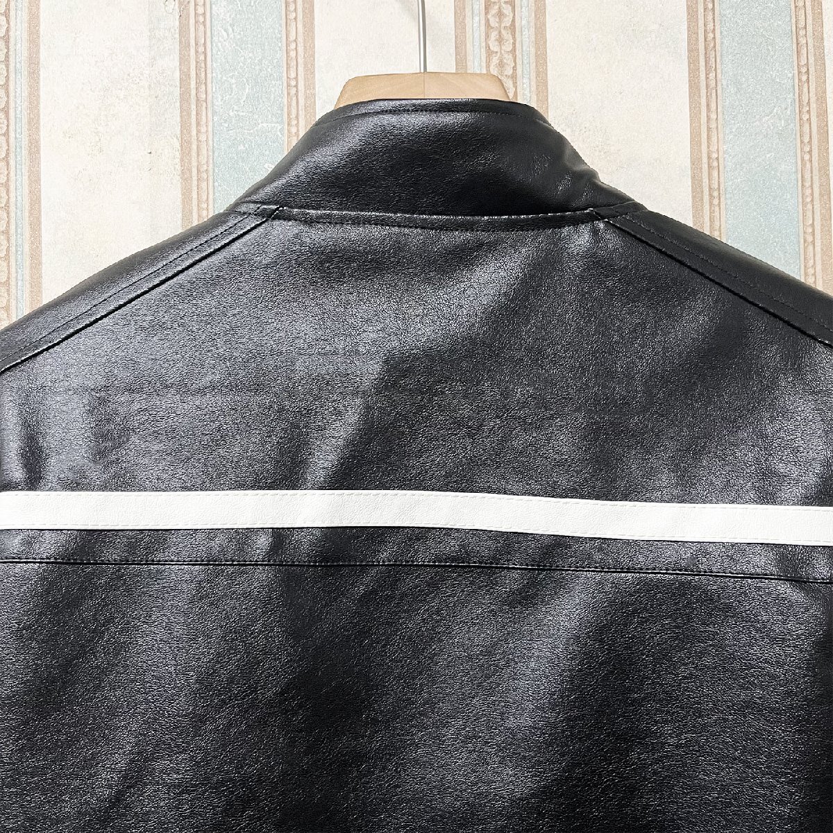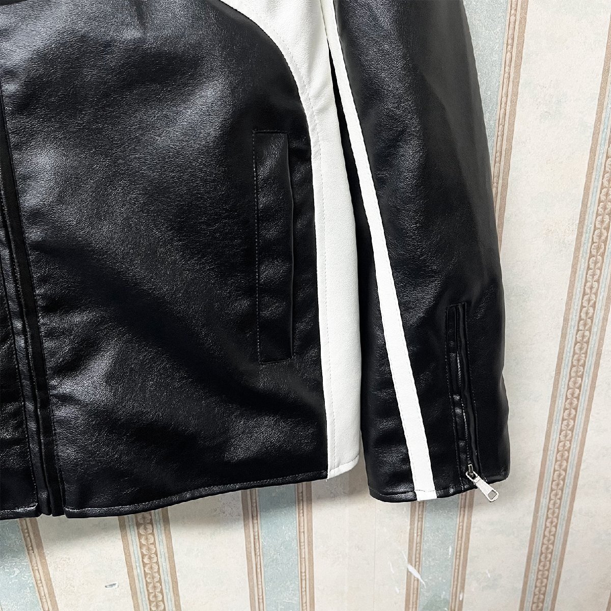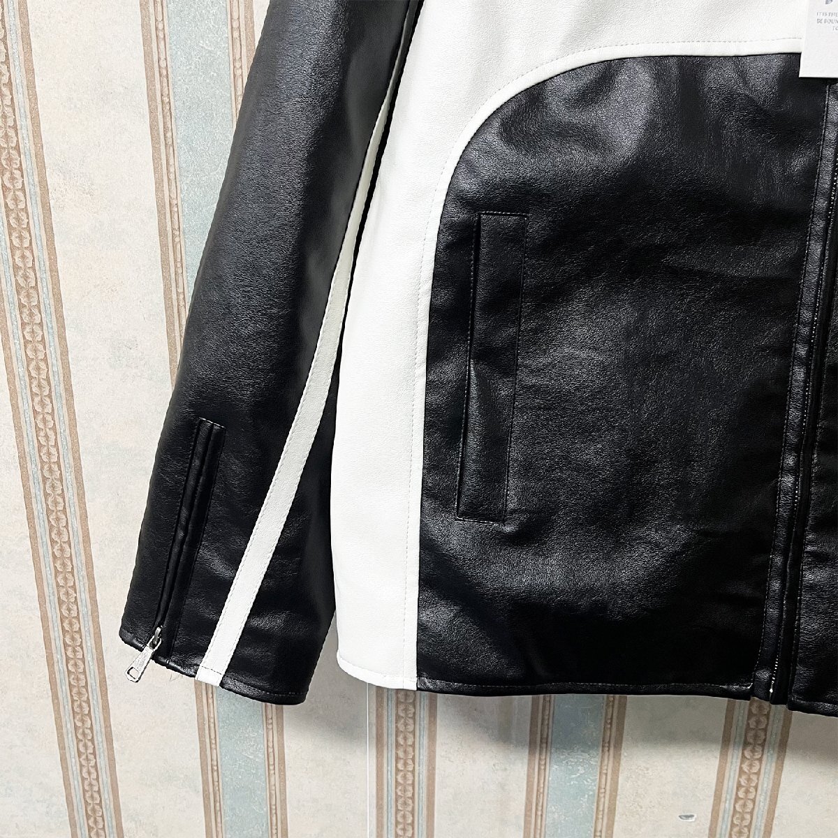 人気 定価12万 FRANKLIN MUSK・アメリカ・ニューヨーク発 レザージャケット PUレザー 切替 立ち襟 スポーティー ライダース バイク サイズ4