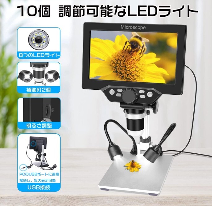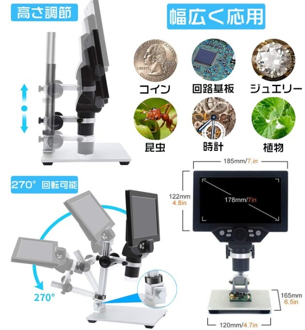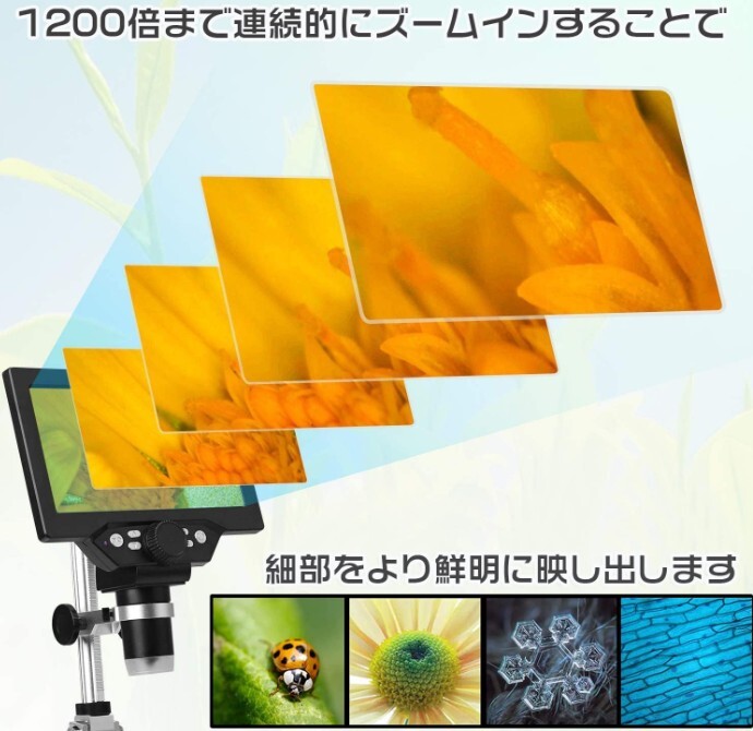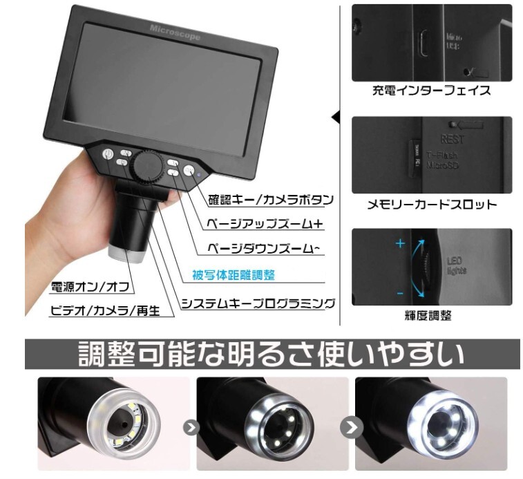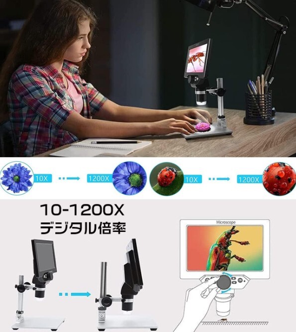 顕微鏡 電子 光学 研究 デジタル顕微鏡A 1200X 高精細 LED 1200倍の高倍率 液晶スクリーン マイクロ溶接 コイン電子観察 学習用