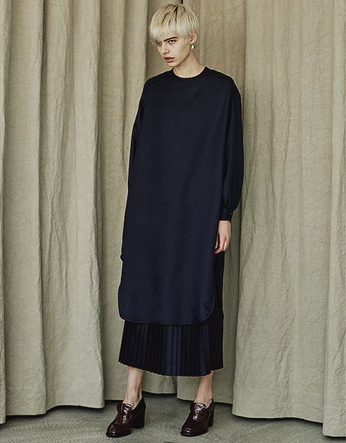 “Scye(サイ)” より、シルクウールサージを使用したロングプリーツスカート。