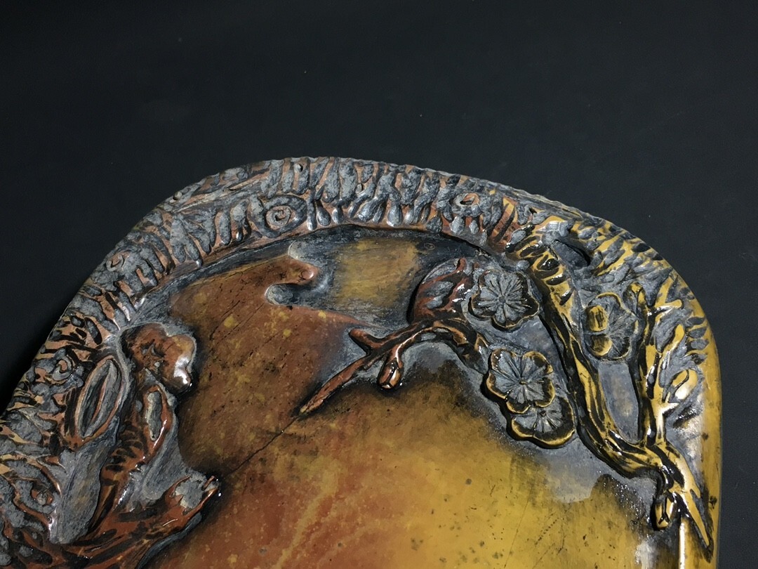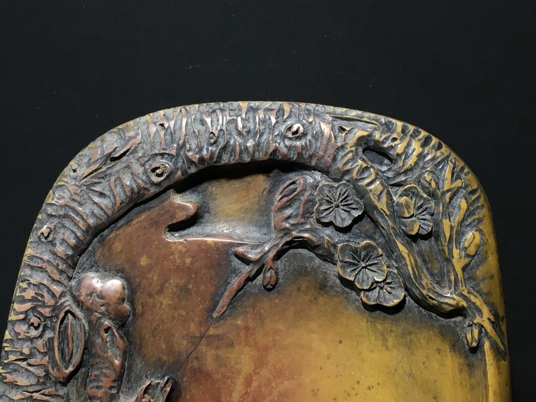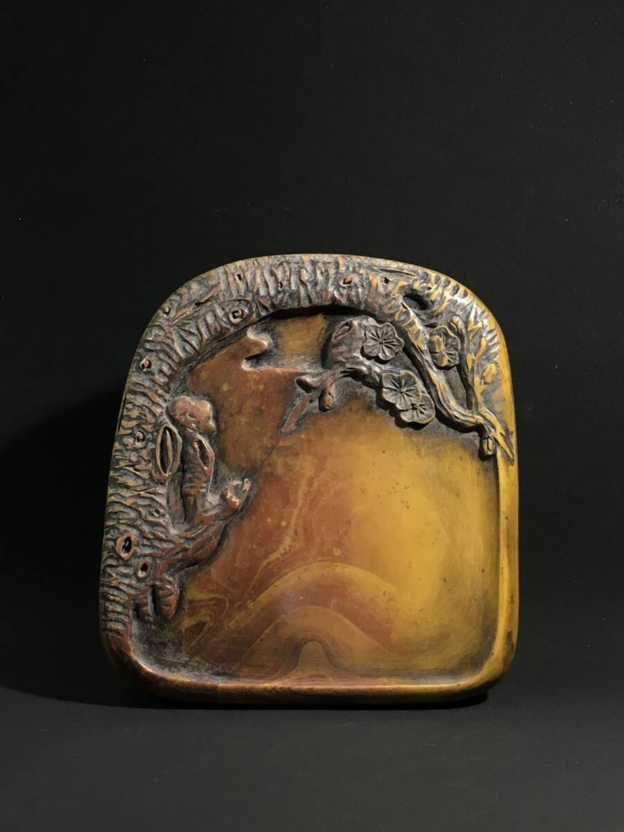 永し 清時代 康熙宸翰銘 端石彫 紅絲硯 古樹逢春 端渓硯 極細工 書道具 文房具 置物擺件 古美術品 時代物 古董品 収集 旧家蔵出 中国唐物