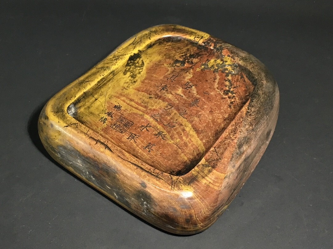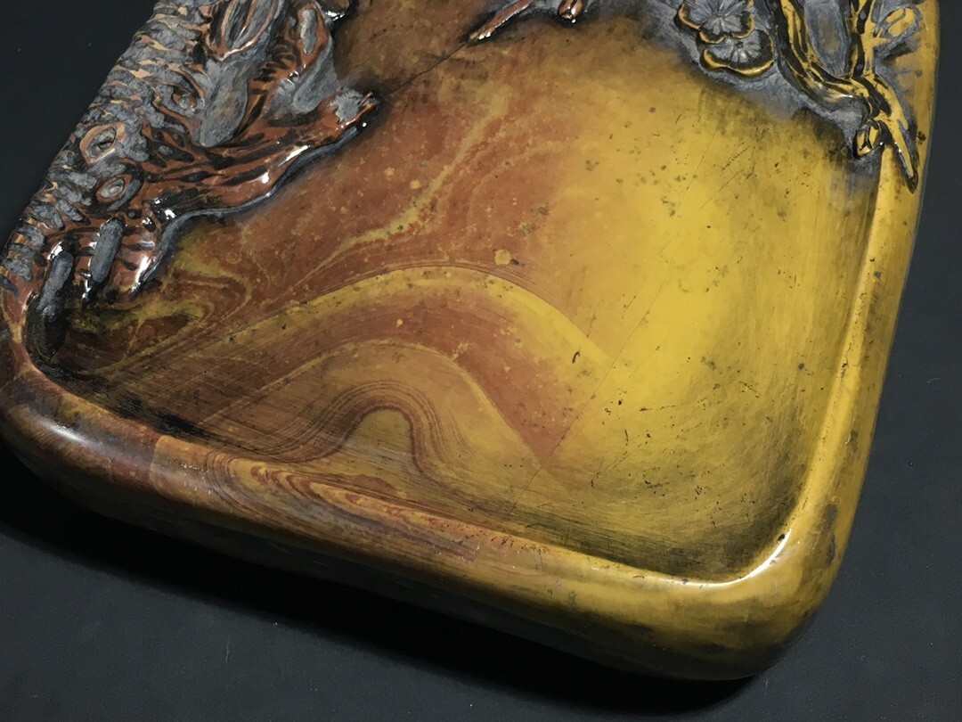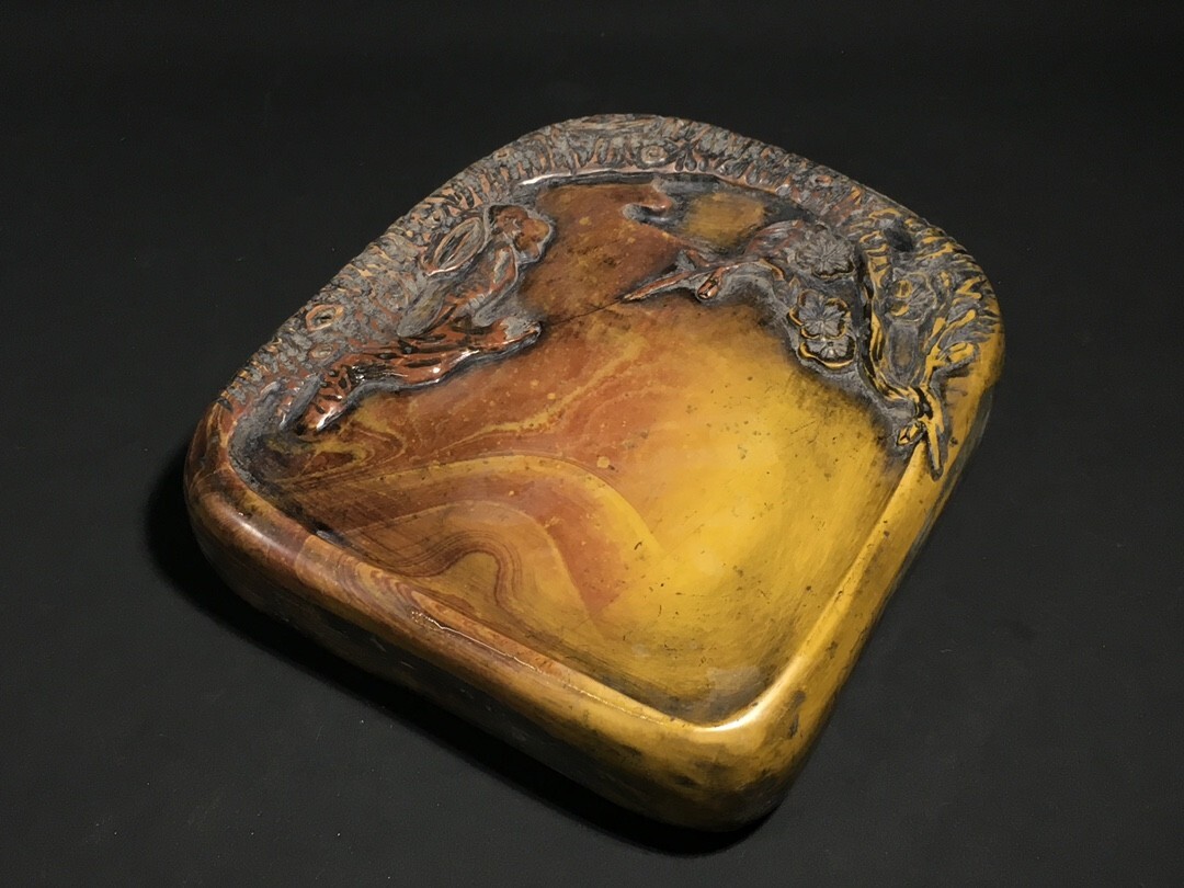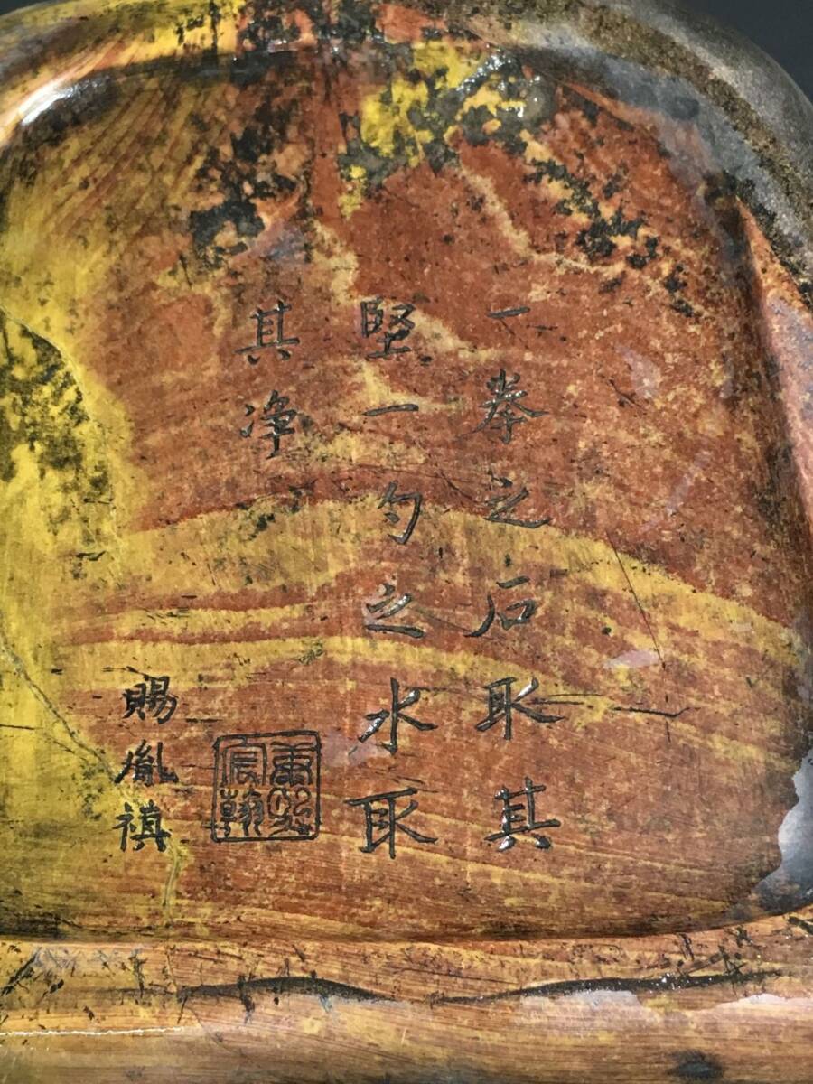 永し 清時代 康熙宸翰銘 端石彫 紅絲硯 古樹逢春 端渓硯 極細工 書道具 文房具 置物擺件 古美術品 時代物 古董品 収集 旧家蔵出 中国唐物