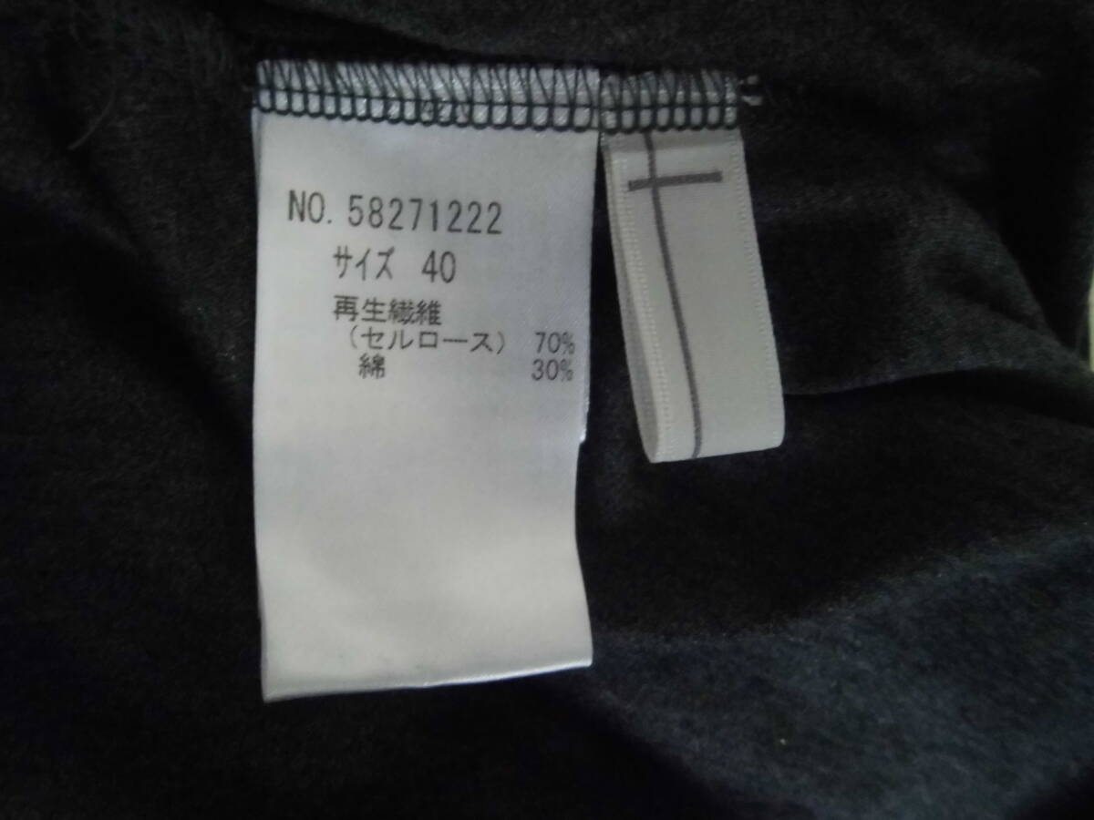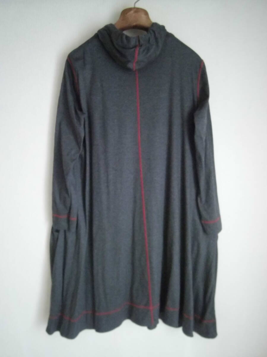 ★着用品の(セラピ)の製品です。 ★色地はグレー、素材はセルロース70%綿30%、サイズ表示は(40)、状態は良好です。 ★実寸は平置きで、(肩幅43)(袖丈53)(脇下身幅51)(着丈87)位です。 ★袖口と裾は2枚合わせなので型の歪みを防いでくれるとおもいます。 |
