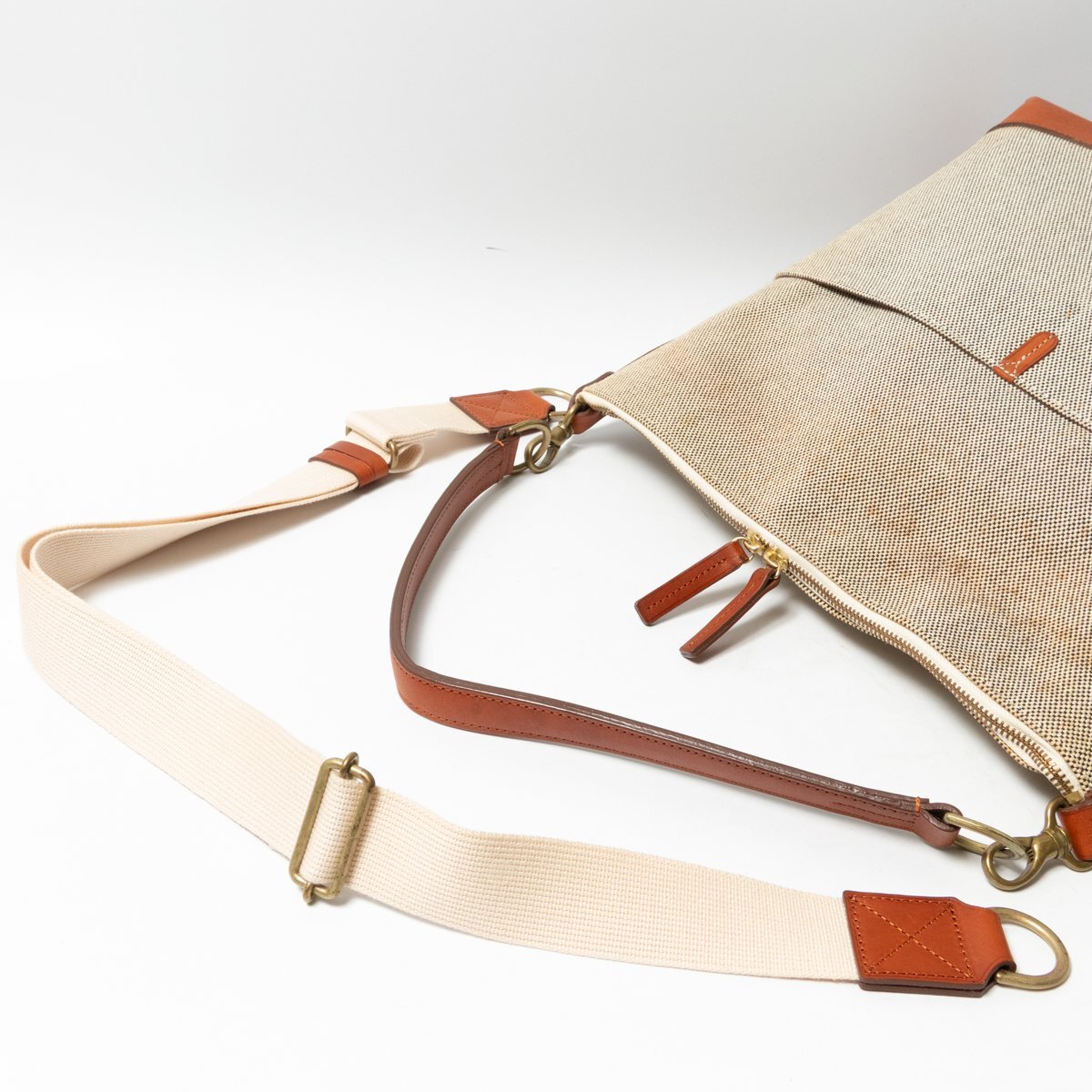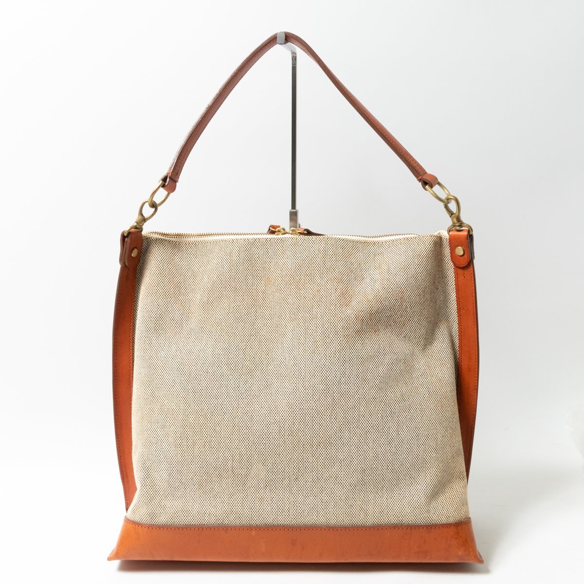 | 状態 | D:型崩れ、キャンバスにシワや毛羽立ちや全体に茶系の汚れ、レザーにシワ・スレ傷・シミ汚れ多数・薄汚れ・変色、金具に傷や変色、内側にシワやスレがございます。 |