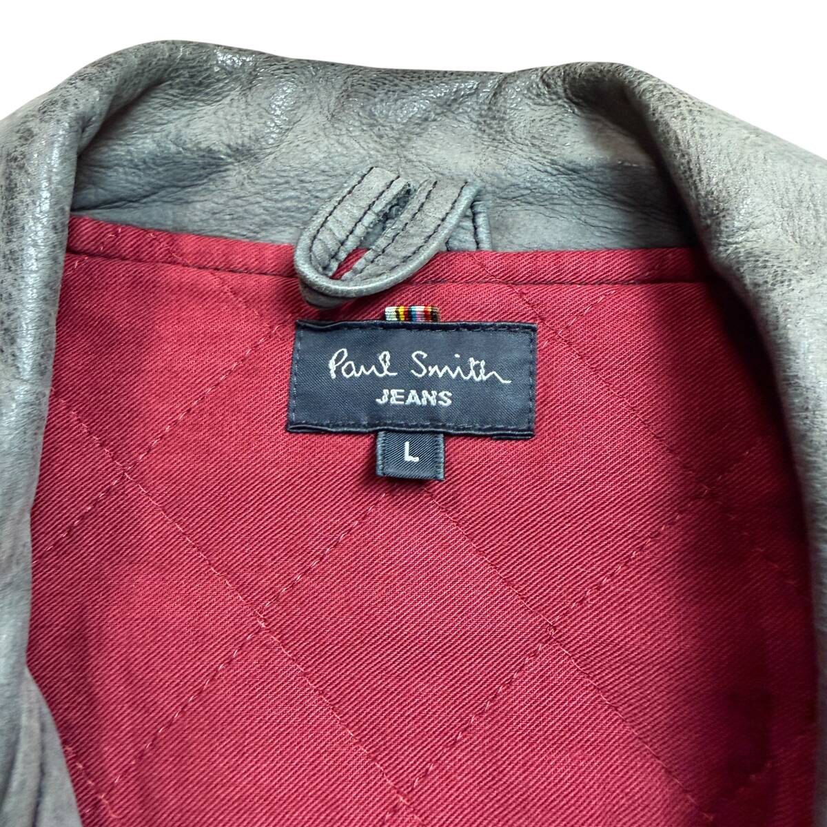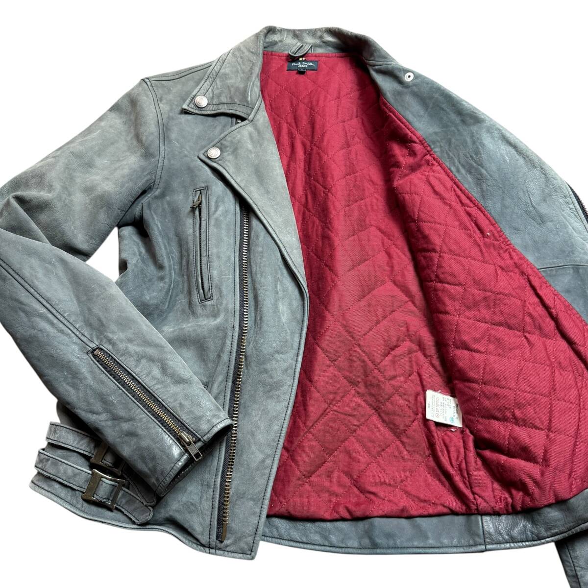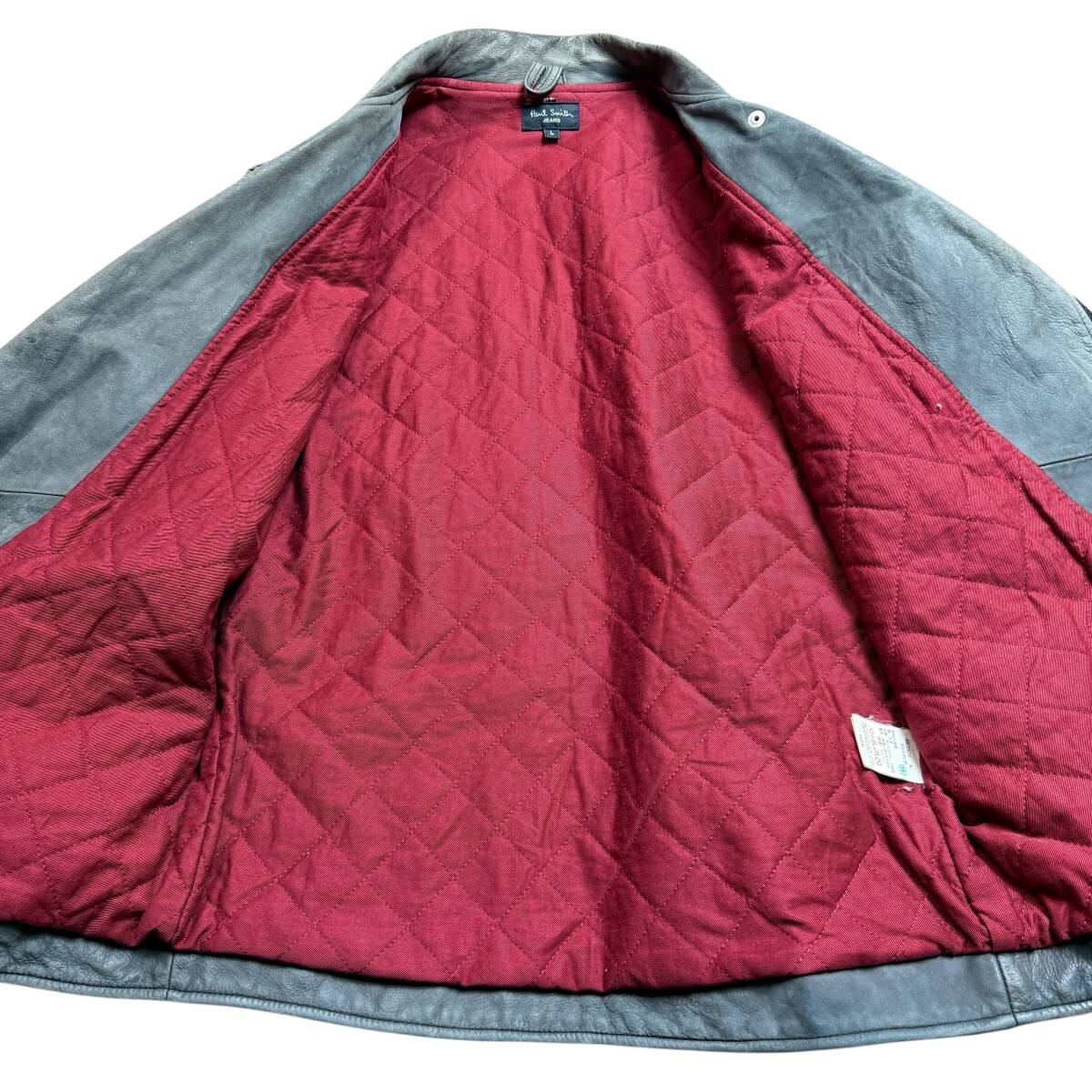 美品●希少L Paul Smith Jeans 3626 ライダースジャケット 本革 レザージャケット 赤裏地 キルティング ダブル グレー系 牛革 カウレザー