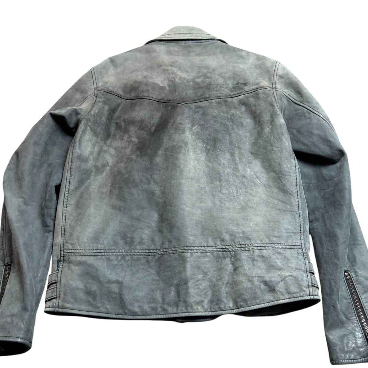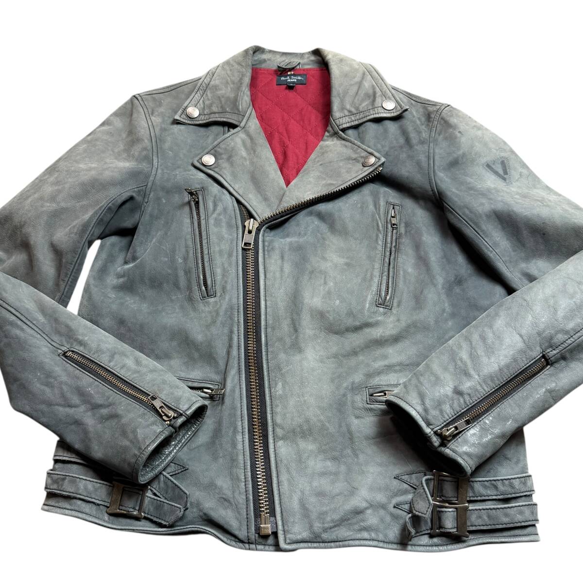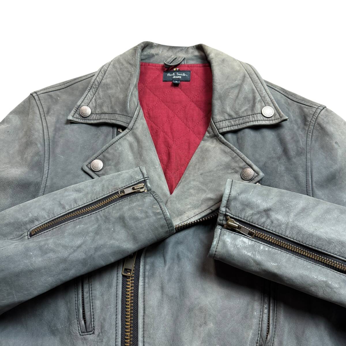 美品●希少L Paul Smith Jeans 3626 ライダースジャケット 本革 レザージャケット 赤裏地 キルティング ダブル グレー系 牛革 カウレザー