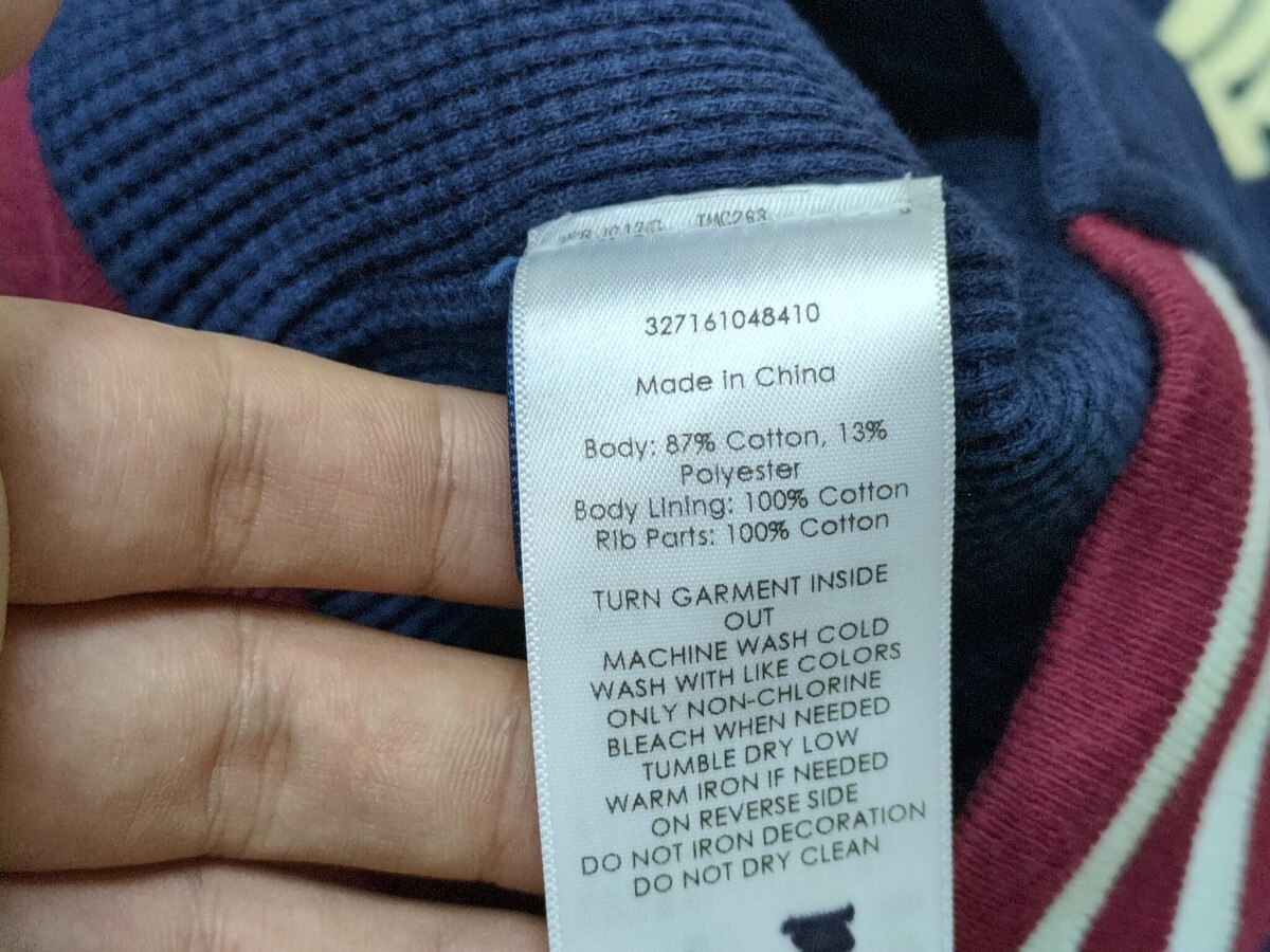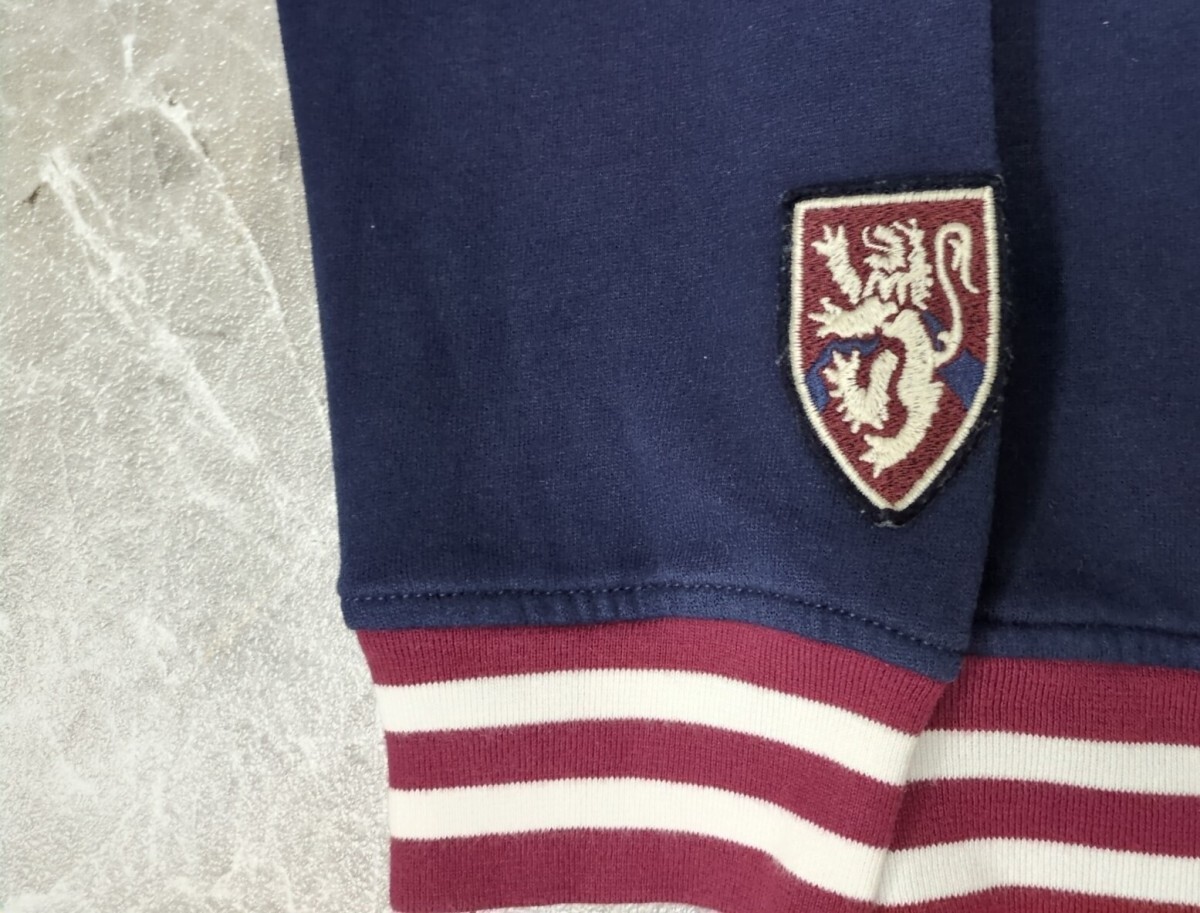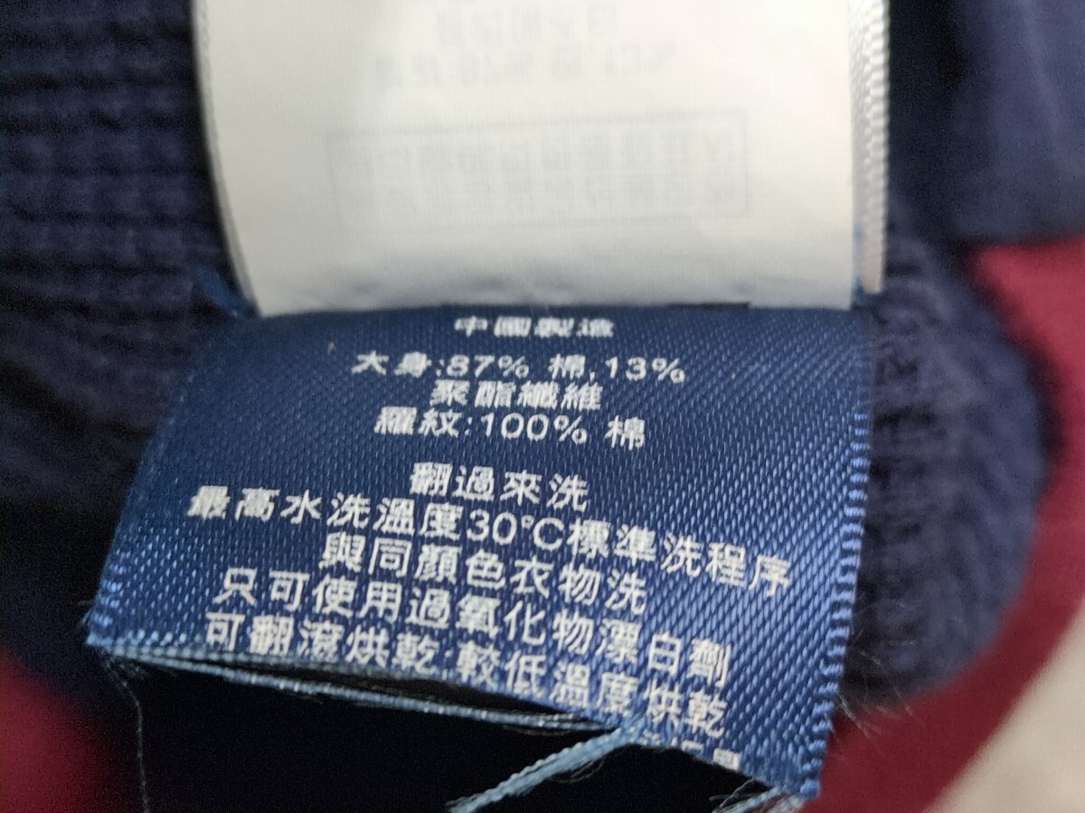 | 正規品です。 【肩幅】ラグラン 【着丈】66 【身幅】58 【袖丈】51 【ウエスト】 【総丈】 【股下】 【裾幅】 色は紺ワインレッド白 使用感あり。襟タグ横、内タグにペン跡あり |