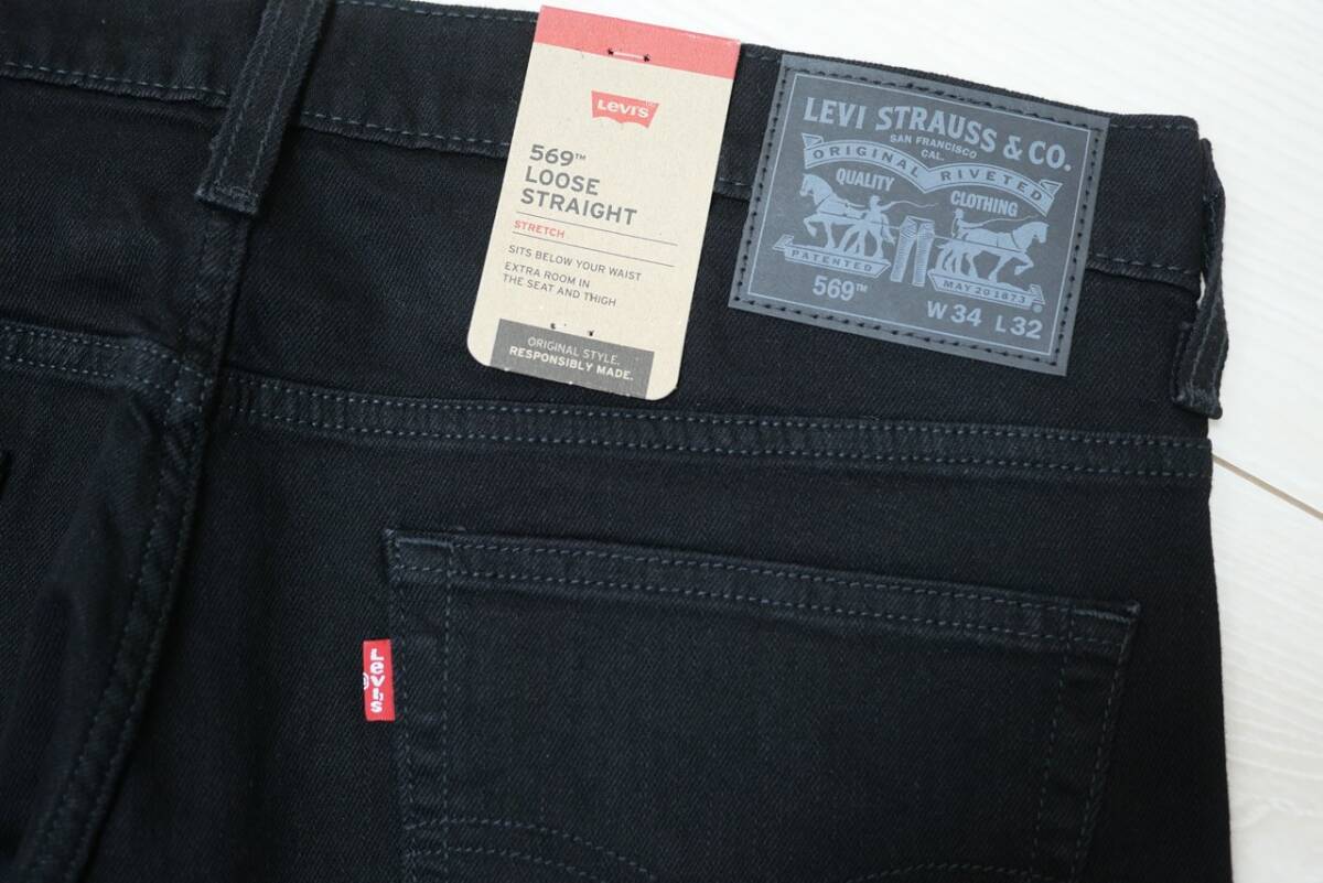 新品リーバイス00569-0125 W34 569 ルーズ ストレート ブラック/黒 ストレッチデニム
