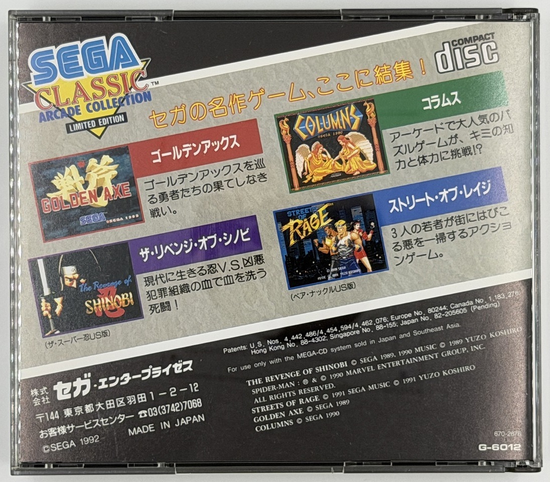 ① セガクラシック SEGA CLASSIC ARCADE COLLECTION (メガCDソフト)