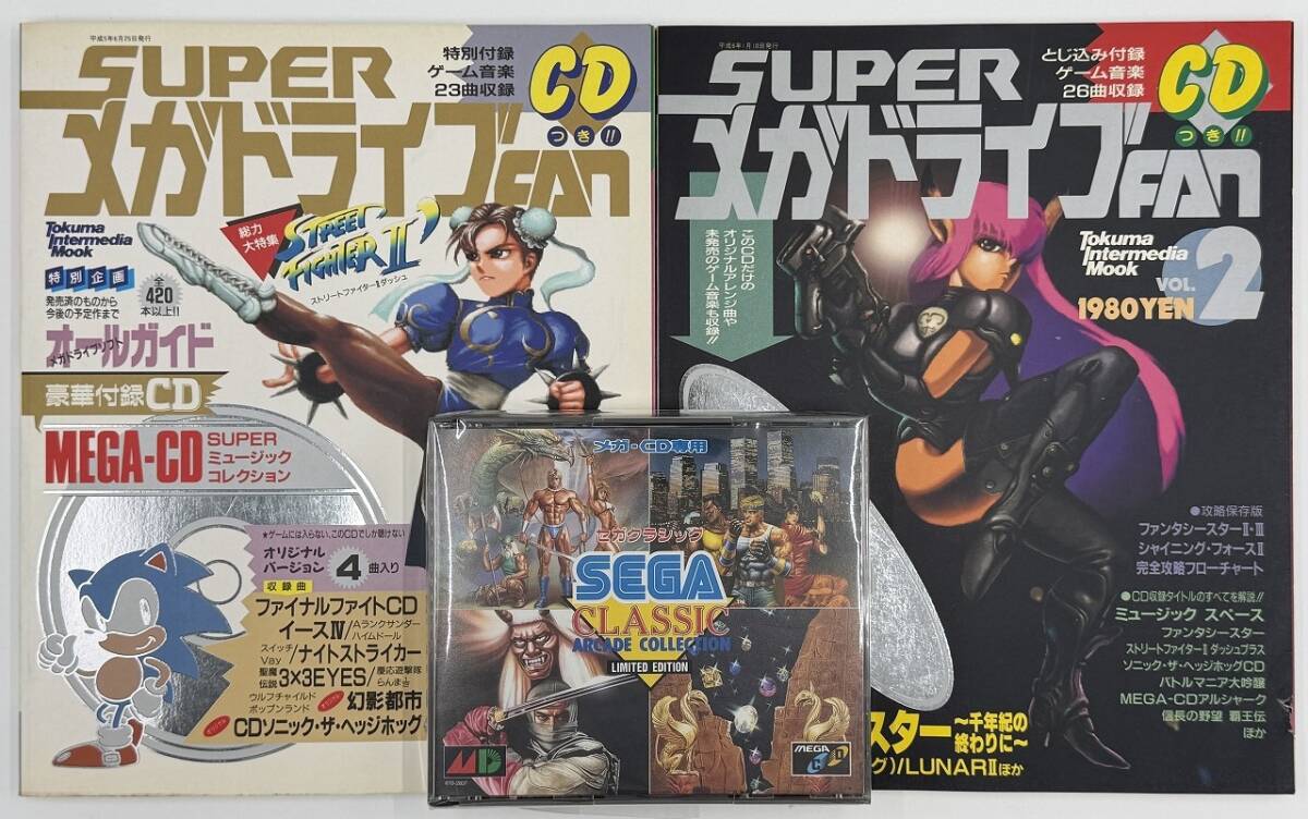 SEGA/ セガ セガクラシック SEGA CLASSIC ARCADE COLLECTION & 徳間書店 雑誌 SUPERメガドライブFAN vol.1 & 2 ゲーム音楽CD付録 中古