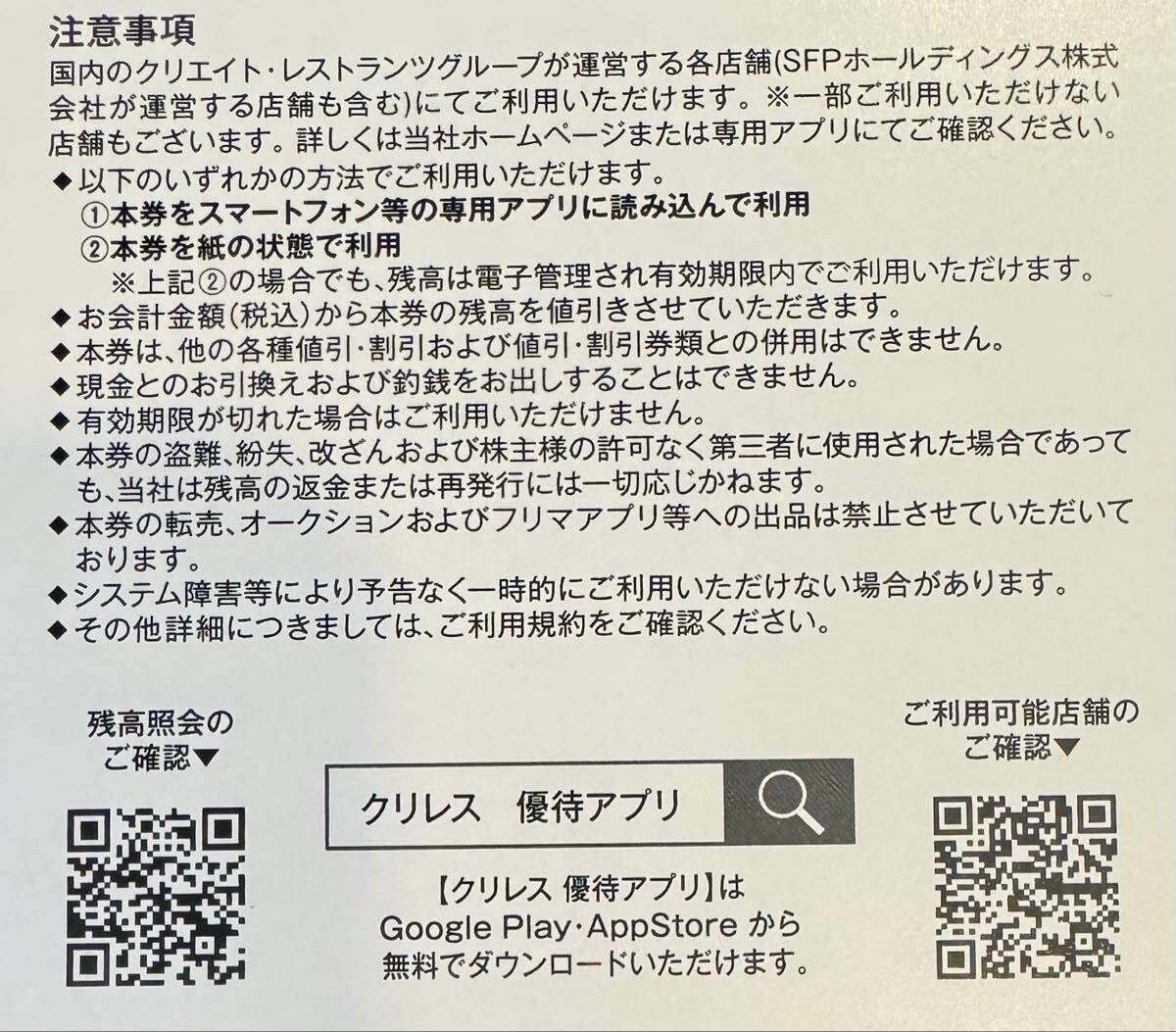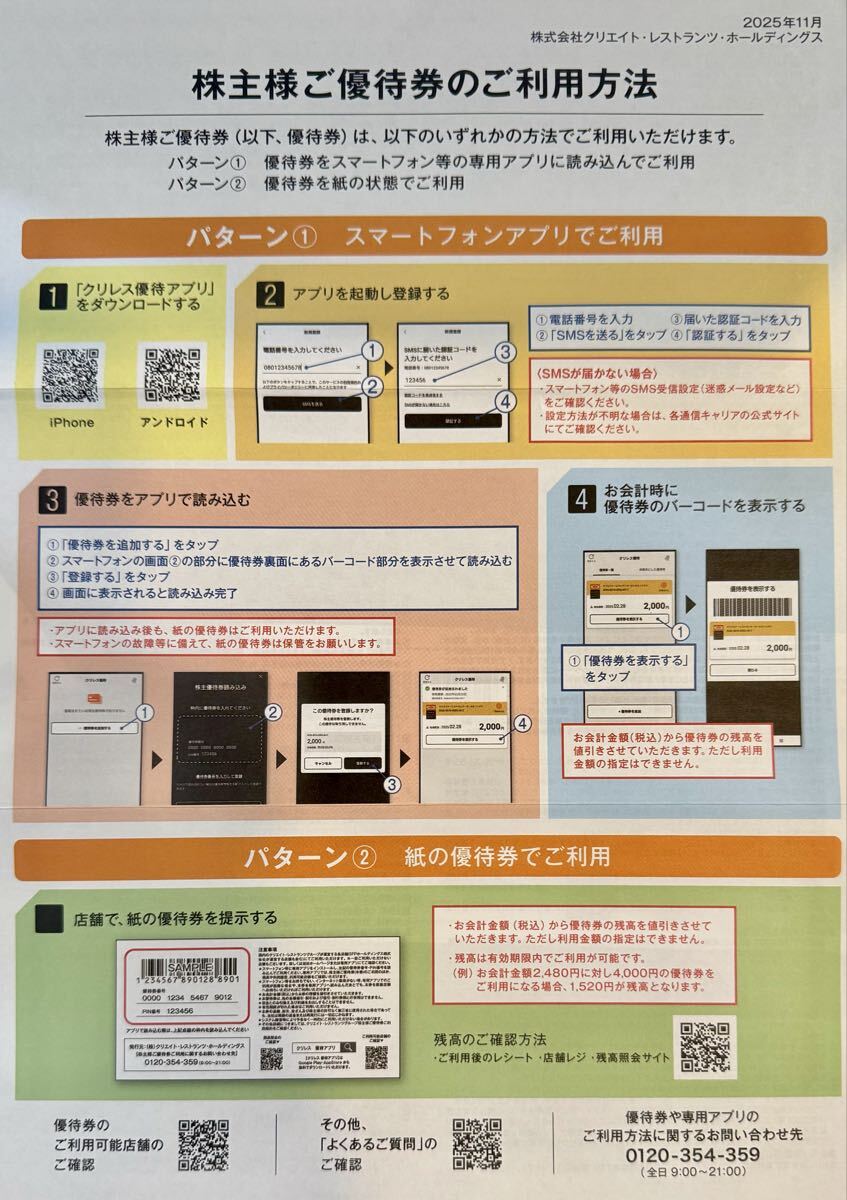 ■詳細は、画像および会社Webページ利用可能店舗https://www.createrestaurants.com/ir/stock/shareholder/を参照して下さい。