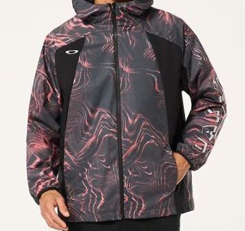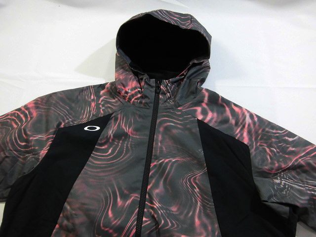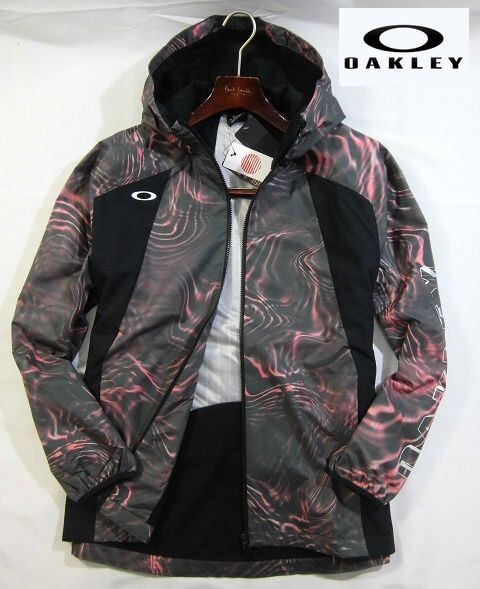 K木11705新品▼ オークリー ゴルフに最適 【 L 】黒×赤系 フーデッドジャケット OAKLEY ブルゾン ジップアップジャケット 保温性 撥水素材