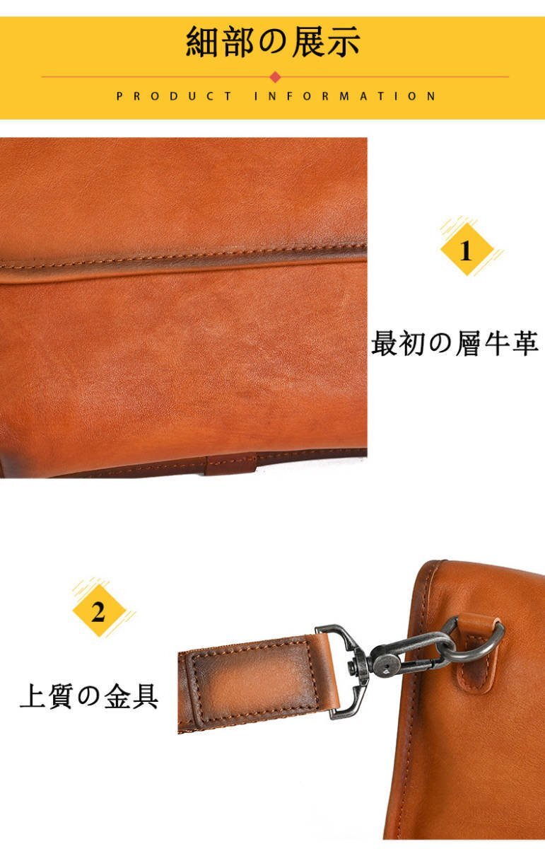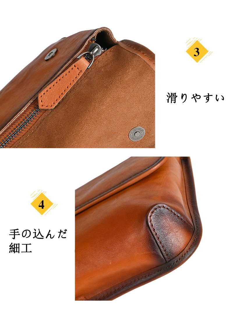 商品詳細 ◆素材(外側):牛革 ◆カラー: ブラウン、ブラック、コーヒー ◆サイズ:横24cm×縦17cm×マチ5cm ショルダーベルト(調節可能) ◆収納可能サイズ: 財布、メガネ、化粧品など、携帯電話、時計 支払詳細 ★Yahoo!簡単決済 ★ご落札後24時間以内入金に関することを