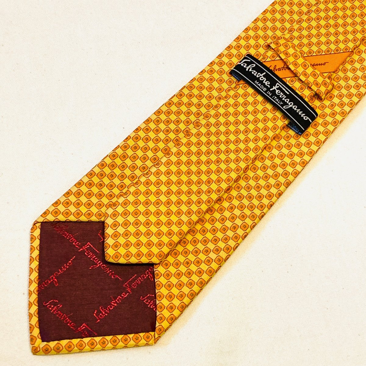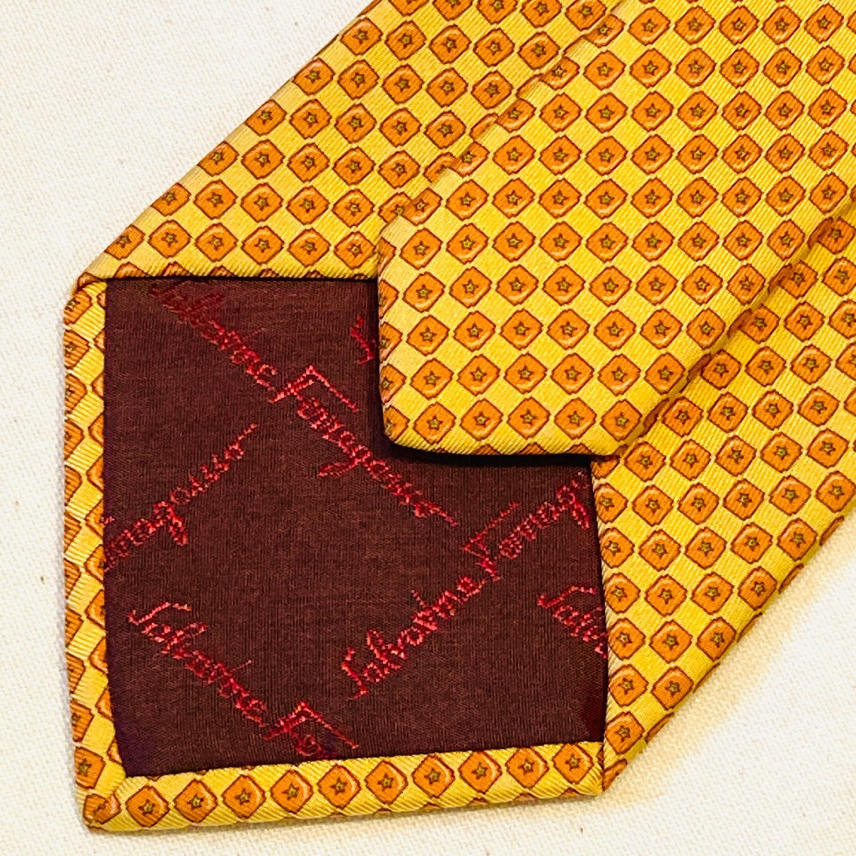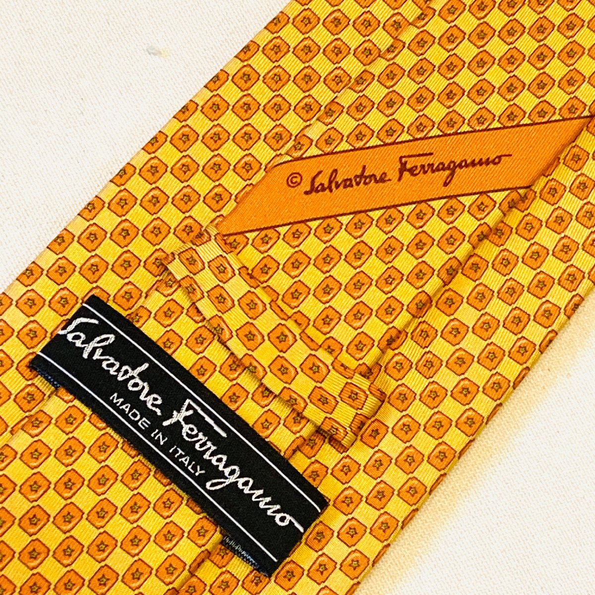 Salvatore Ferragamo サルヴァトーレフェラガモ イタリア製 絹 シルク SILK 100% 高級 ネクタイ オレンジ系 総柄 スター 星柄