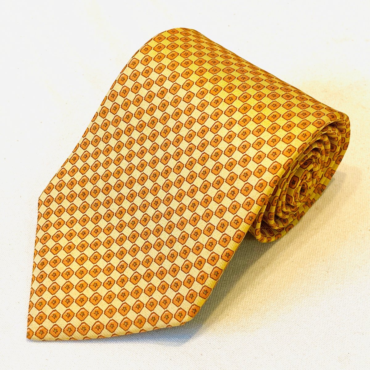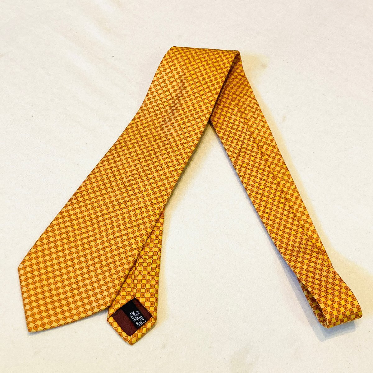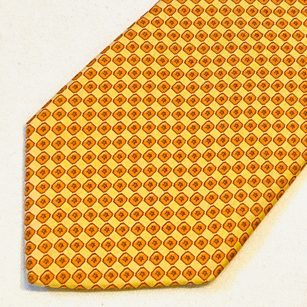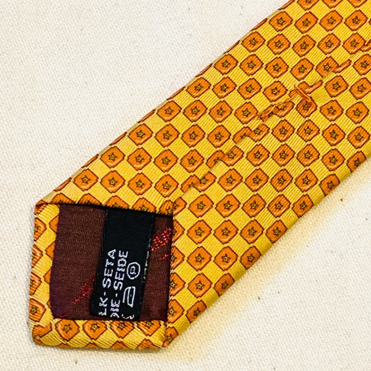 Salvatore Ferragamo サルヴァトーレフェラガモ イタリア製 絹 シルク SILK 100% 高級 ネクタイ オレンジ系 総柄 スター 星柄