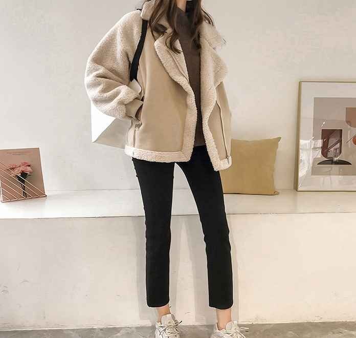 ・スエード調コートでクールでカッコイイ印象に。