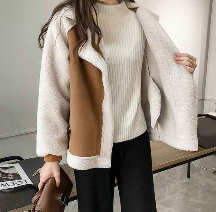 ・大きめの襟で小顔効果。