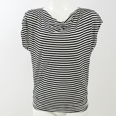 | ゆる感が女性らしさを高める洗練ボーダーカットソー☆ 肩部と裾サイドに寄せたギャザーが作り出すドレープの 柔らかさが、カジュアルな印象のボーダーに 大人の女性らしさをプラスしてくれます。 肌触りが良く、落ち感のある薄手の生地で ボディーラインをさり気なくカバー♪ 実寸 着丈約55cm ゆき丈28cm バスト約94cm 【サイズ】:(34) 【素 材】:(リヨセル70% キュプラ30%) 【 色 】:(黒・白) 【程 度】:(A) 管理番号 27150610-004 427 011 | ||||