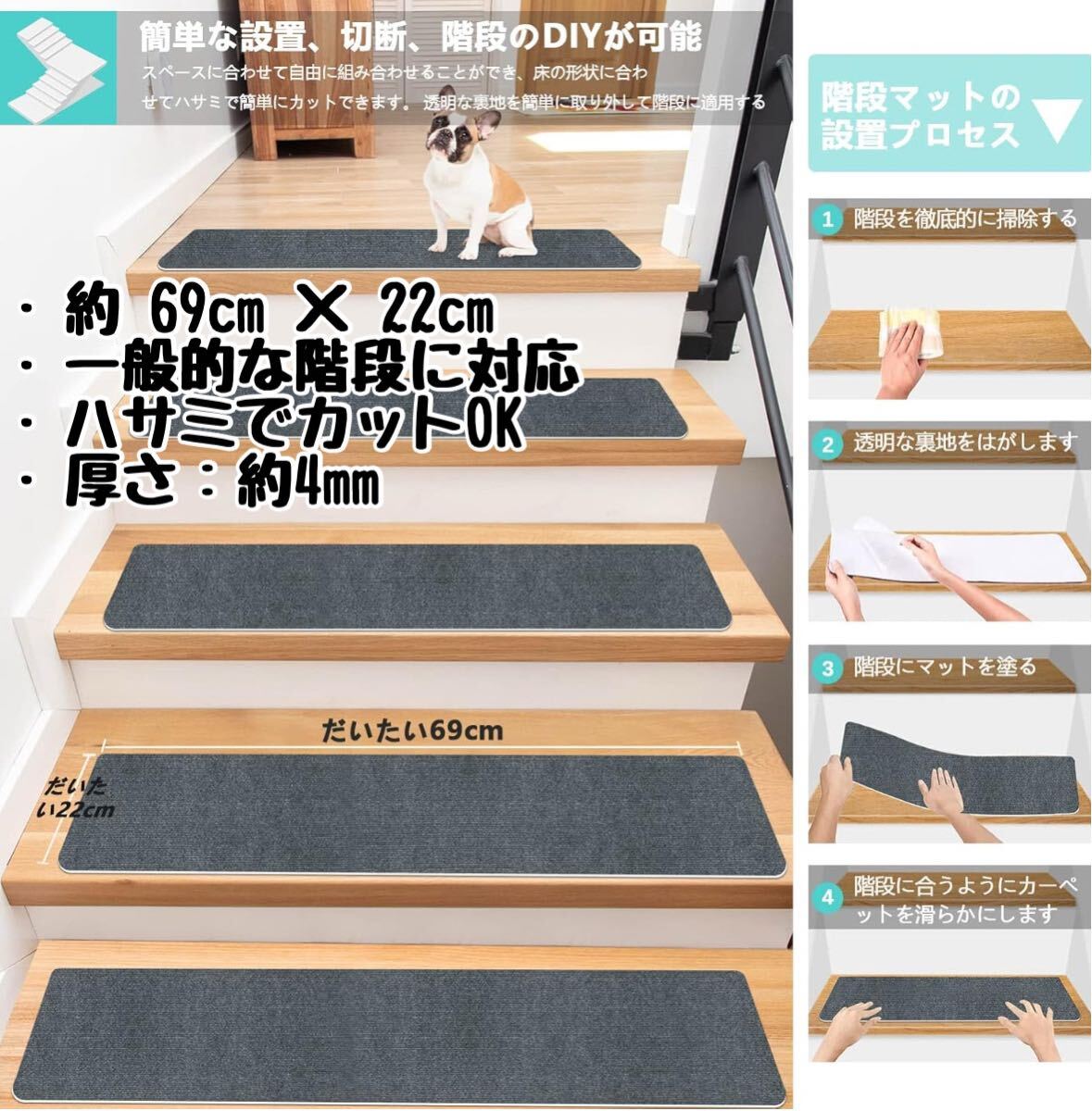 サイズは約69×22cmで一般的な階段に対応。必要に応じてカットも可能です。