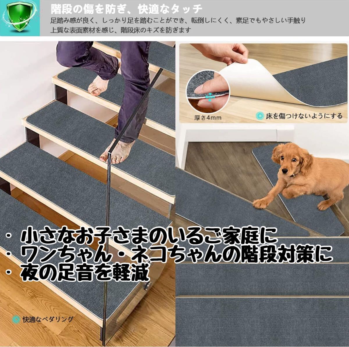 厚さ約4mmの適度なクッション性があり、素足でも快適に階段を上り下りできます。犬や猫が走り回っても階段にキズが付きにくく、床面をしっかり保護します。足音も軽減されるので、マンションや二階建てのご家庭にもおすすめです。