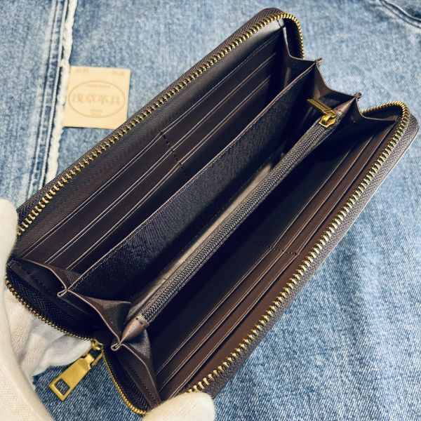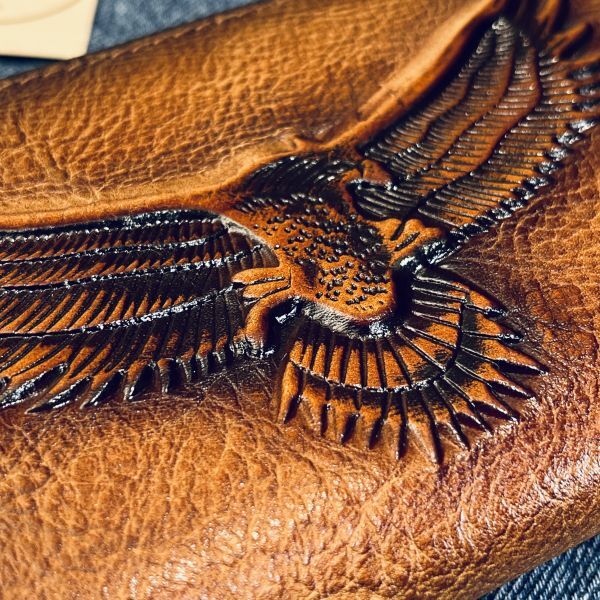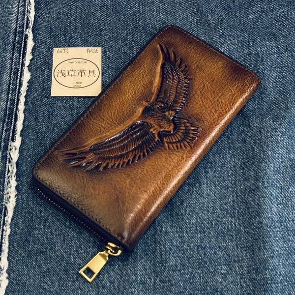 【浅草革具】メンズ財布 長財布 イーグル ラウンドファスナー 牛革 ヌメ革 1円 ハンドメイド ロングウォレット 新品 未使用 一円 ブラウン