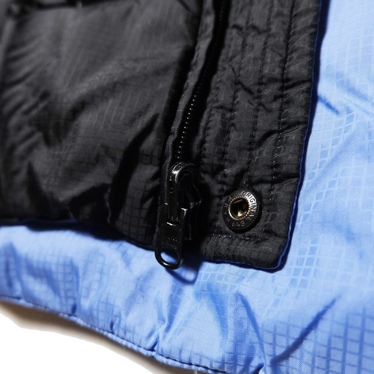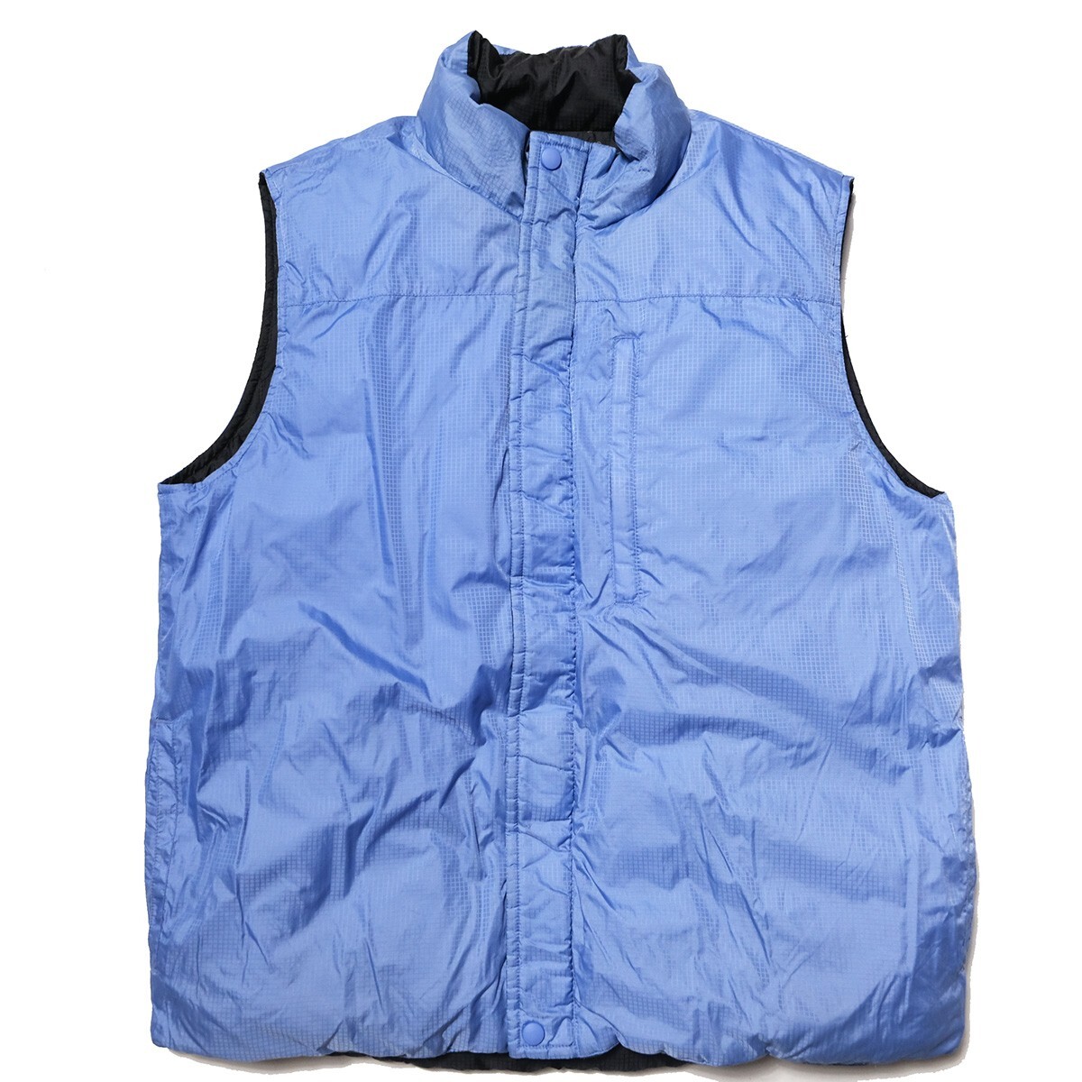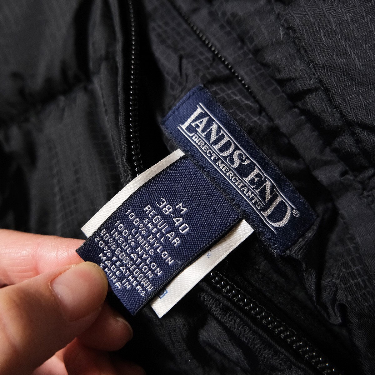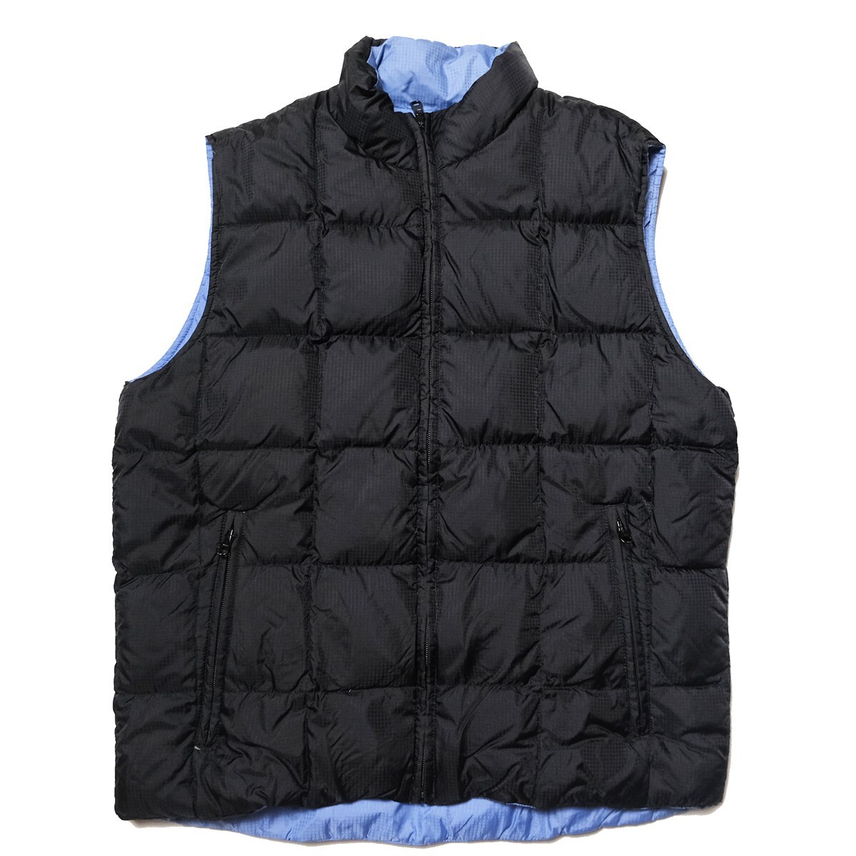 90's 00's ランズエンド ナイロン リバーシブル ダウンベスト (M) 黒×水色 リップストップ 90年代 旧タグ オールド LANDS'END アウトドア