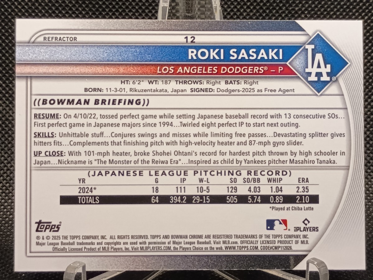 佐々木朗希 499枚限定 リフラクター 【2025 TOPPS BOWMAN CHROME BASEBALL #12 ROKI SASAKI REFRACTOR】 ロサンゼルス・ドジャース