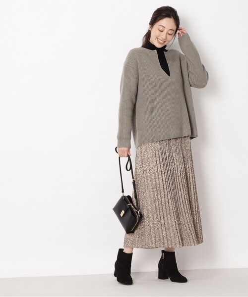 ウール高混率のざっくりとした風合いが印象的なプルオーバーニット。あえて深めに設定したキーネックが今シーズンらしいデザインです。裾はすとんとしてレイヤードしやすく、袖からちらっとインナーを覗かせてスタイリングするのがおすすめ。